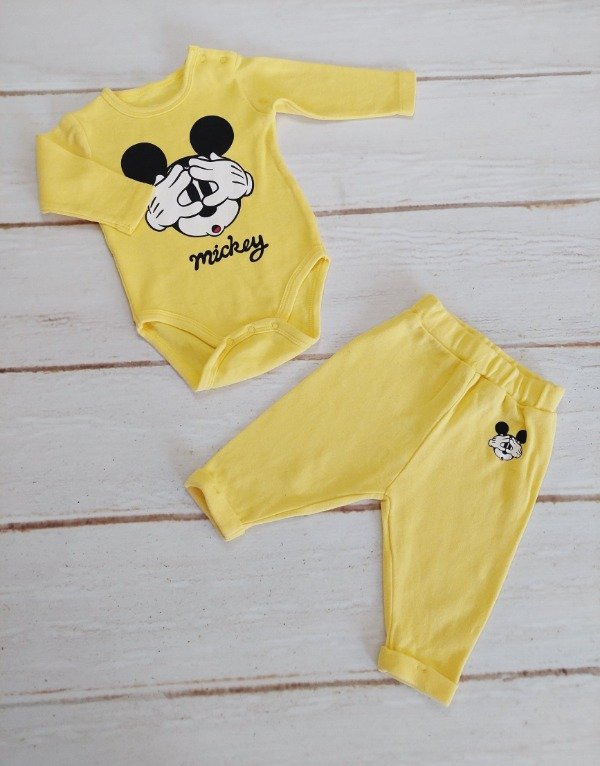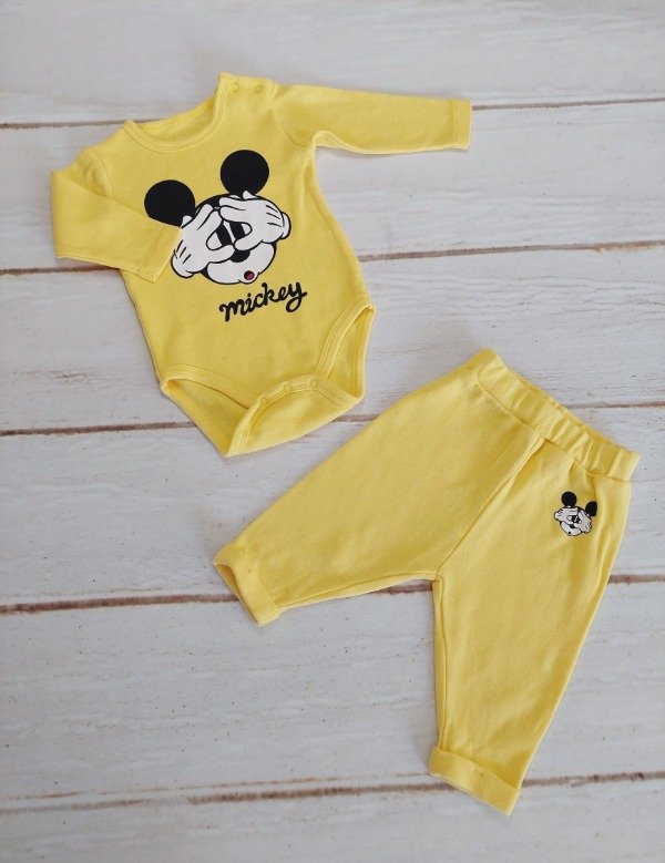 Conjunto de body y pantalón amarillo de algodón con Mickey Disney RN