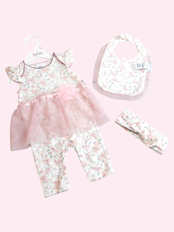 Conjunto floreado con rosa 0/3 meses NUEVO
