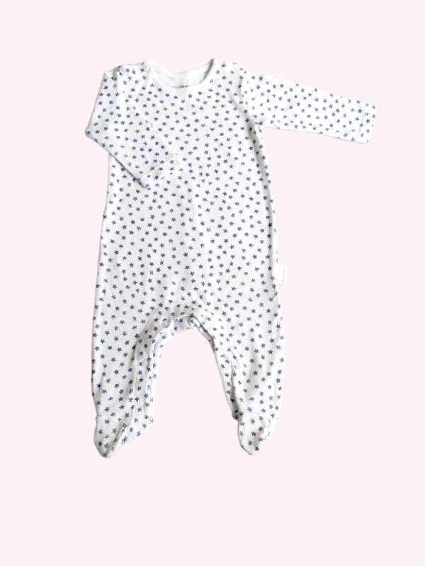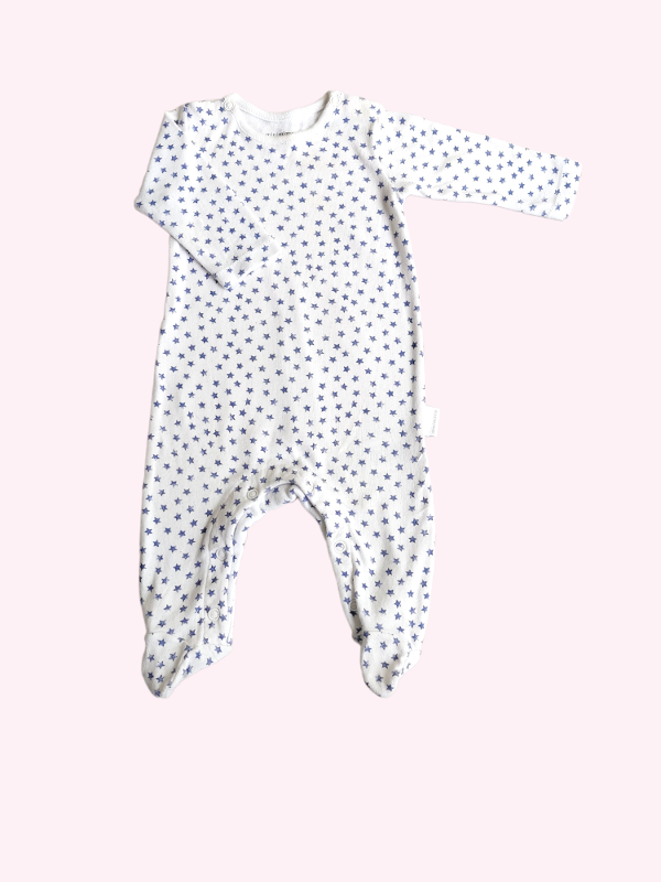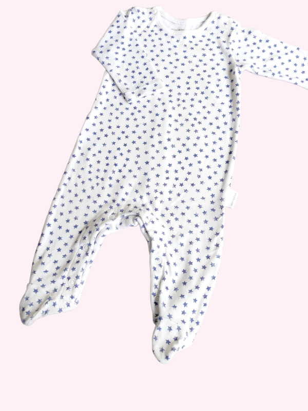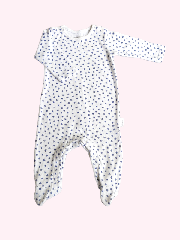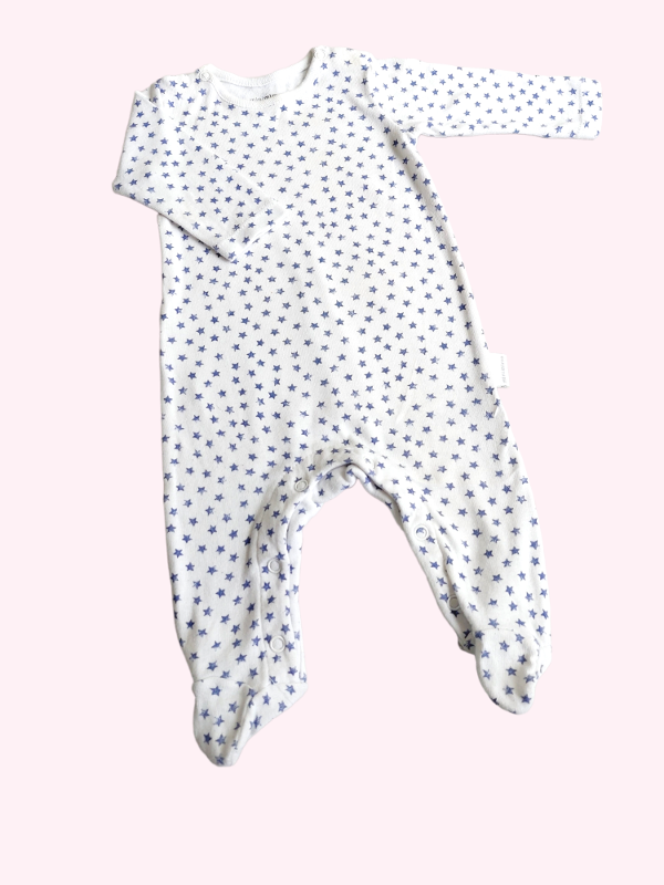 Pijama algodón blanco con estrellas azules Mimo 0/3 meses