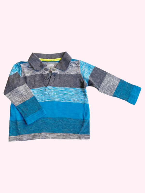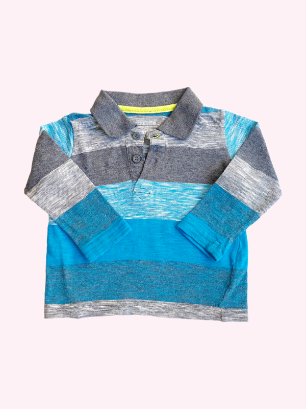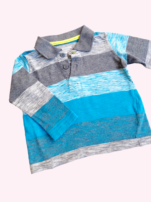 Chomba algodón manga larga gris y celeste Toughskins 12 meses