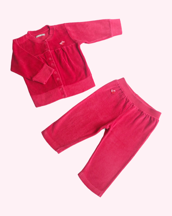 Conjunto rojo de plush con botones Mimo 12/18 meses