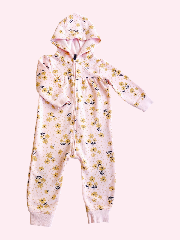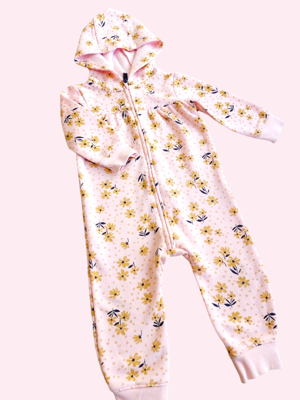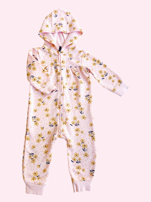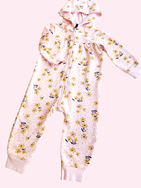 Enterito algodón rosa con flores ocre Carters 12 meses