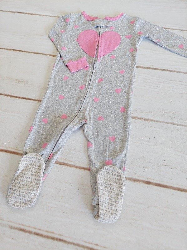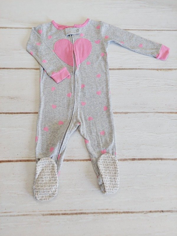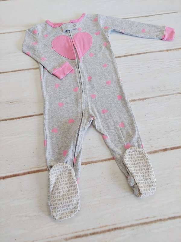 Pijama con pie de algodón gris con corazón rosa Carters 12 meses