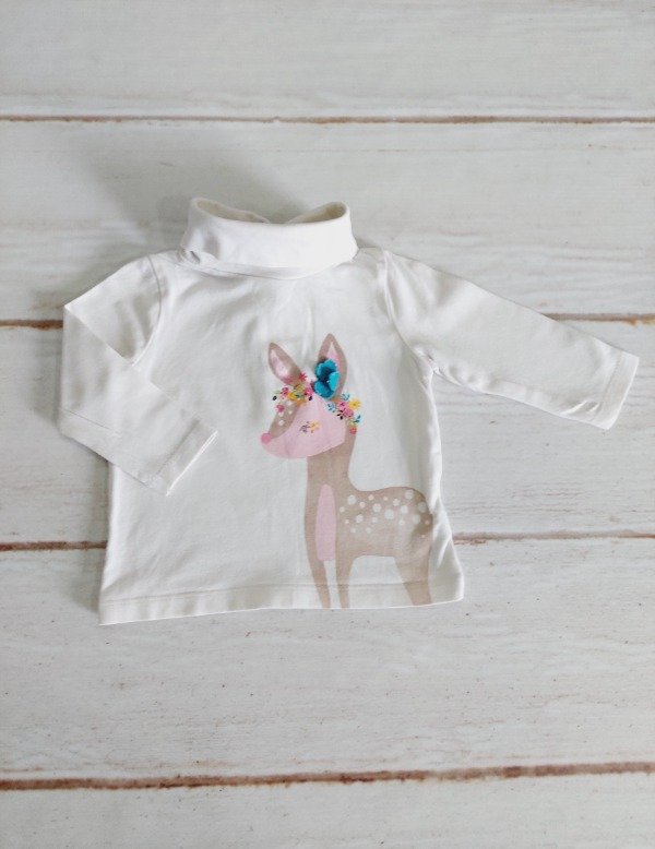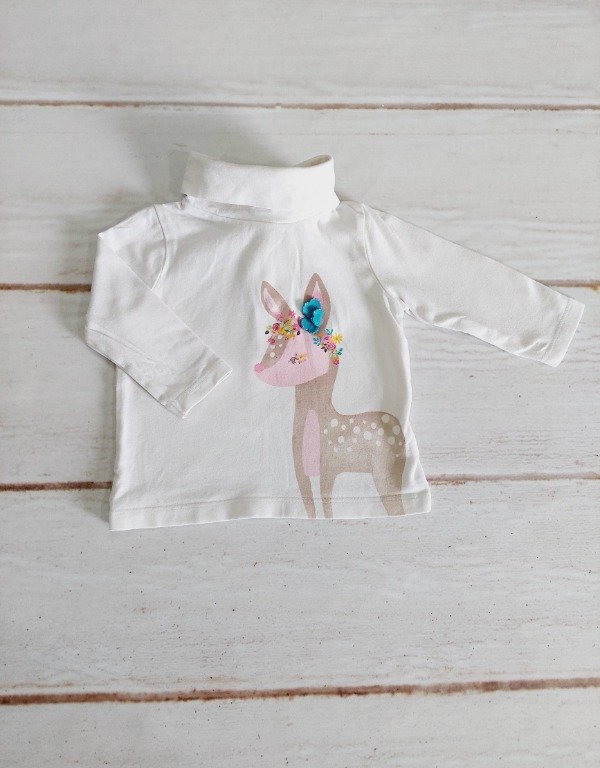 Polera manga larga de algodón blanca con ciervo 12 meses