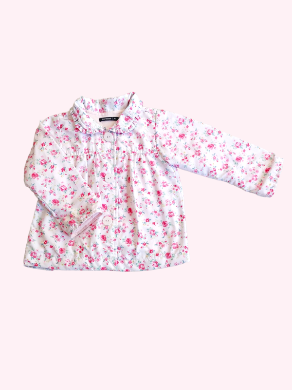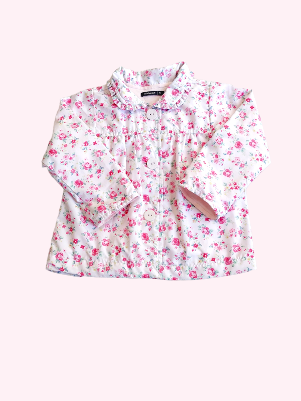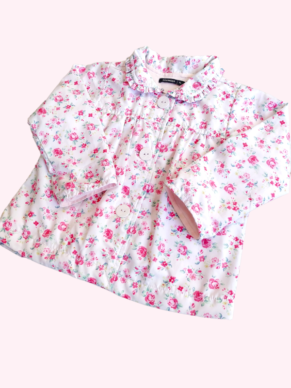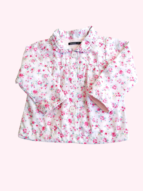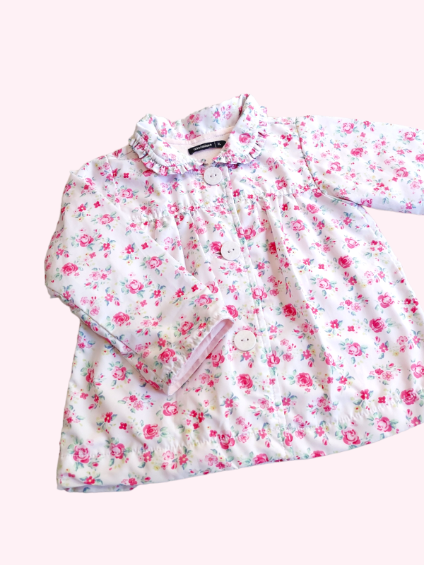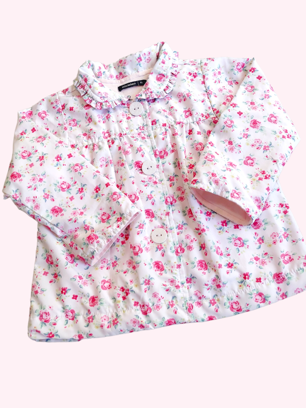 Saquito forrado en algodón rosa con flores Mimo 12/18 meses