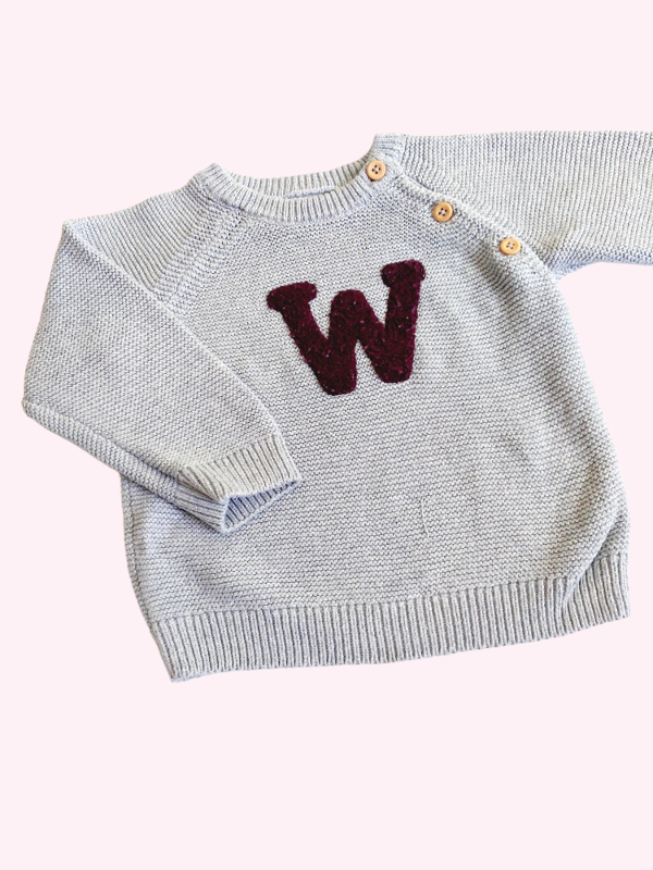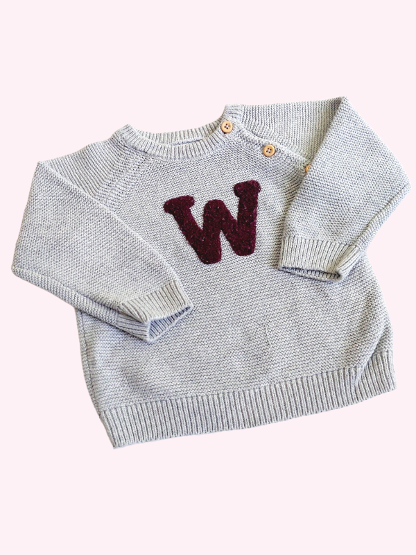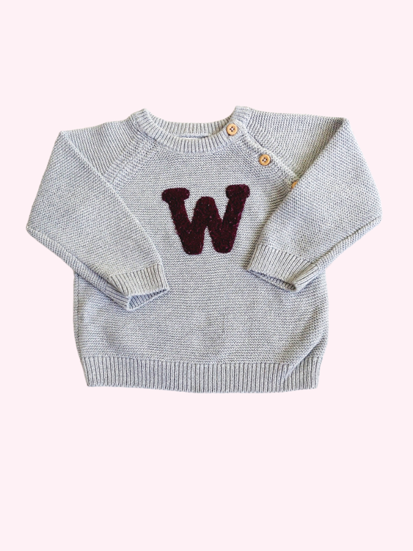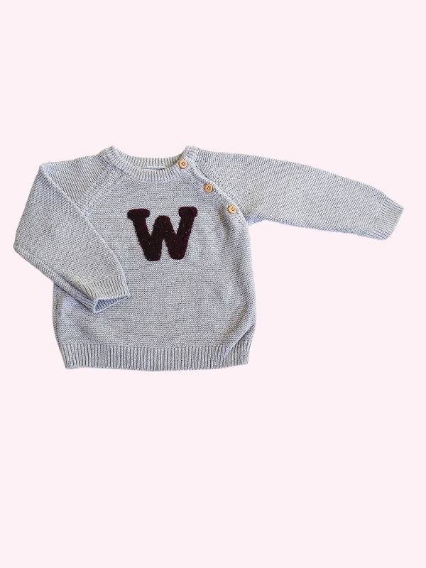 Sweater gris con W bordo Tex 12 meses