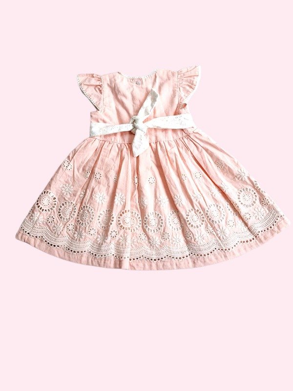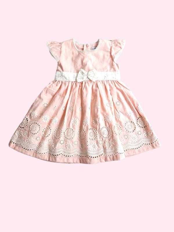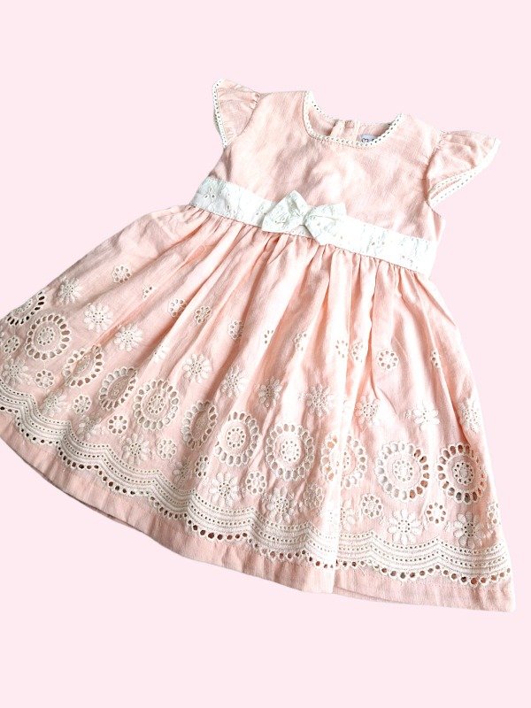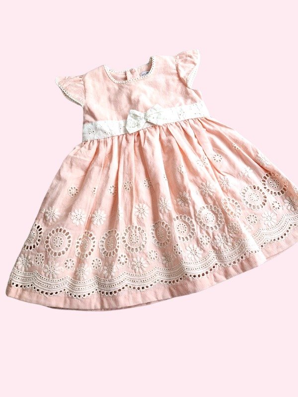Vestido rosa jaspeado con puntilla y laso Drama Queen 12 meses