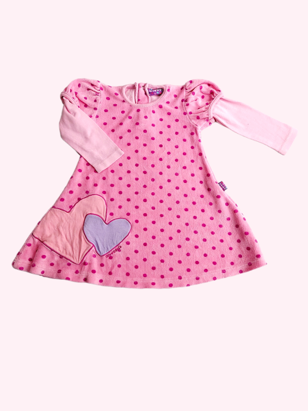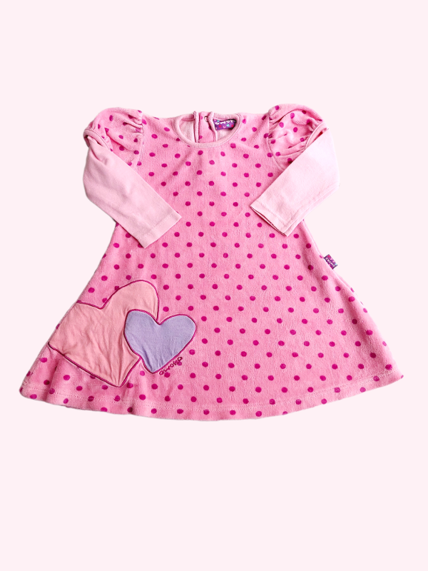 Vestido rosa plush con lunares violeta Owoko 12 meses