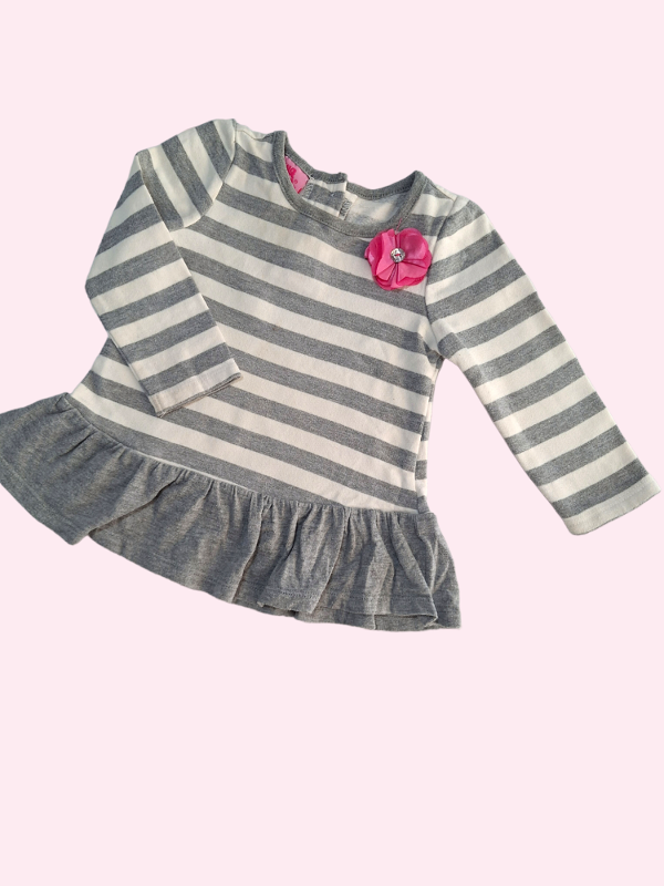 Buzo rayado gris y blanco con flor Young Hearts 18 meses
