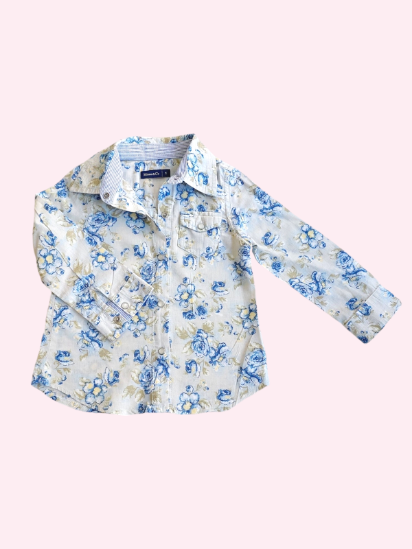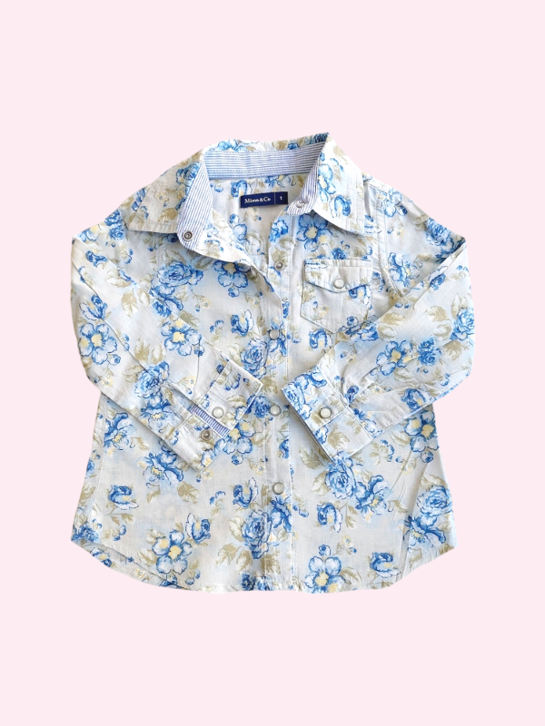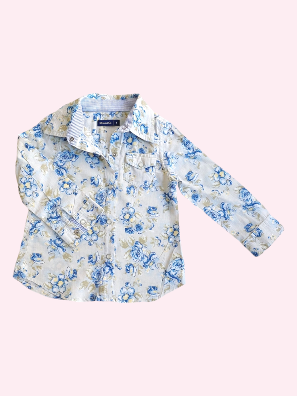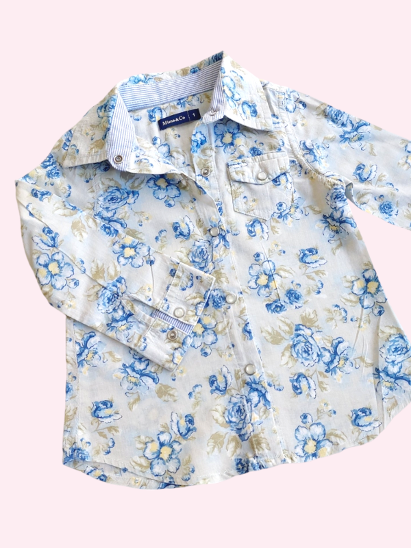 Camisa manga larga celeste con flores Mimo 18/24 meses