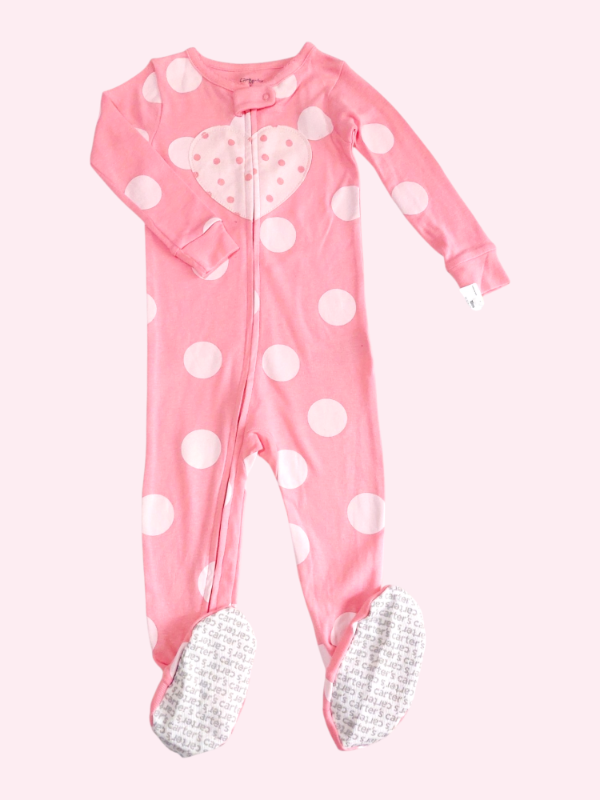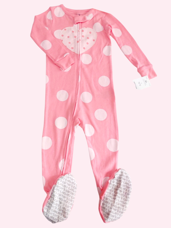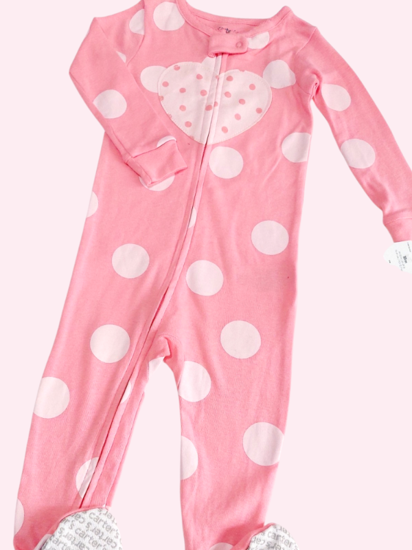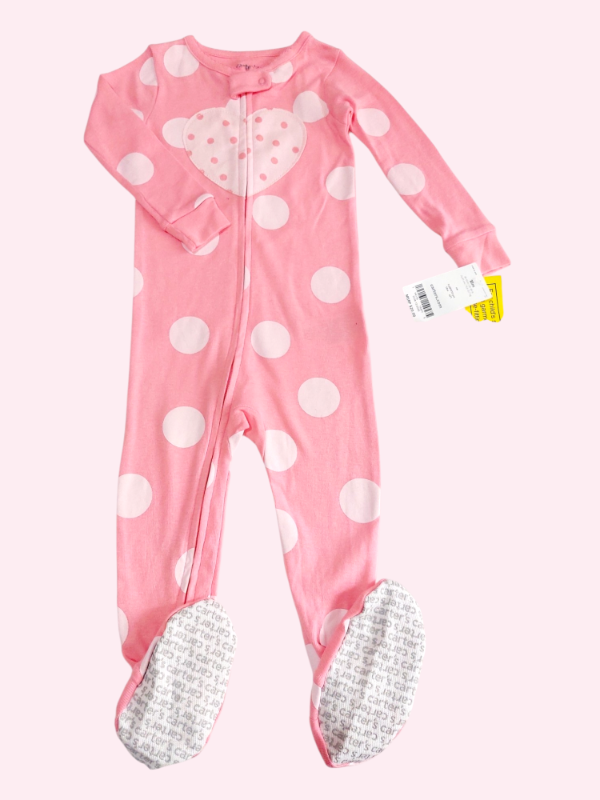Pijamas algodón rosa con lunares y corazón Carters 18 meses NUEVO