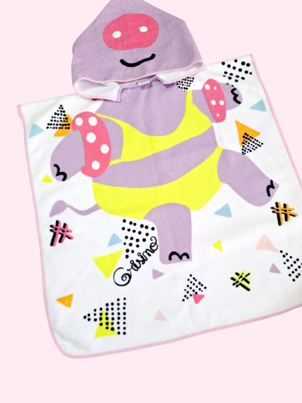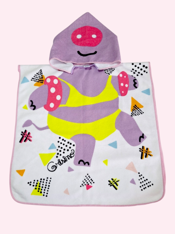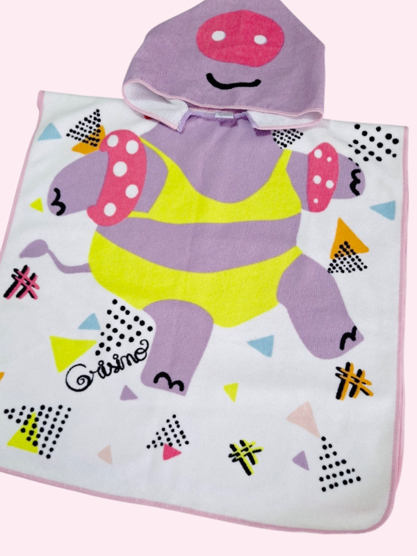 Poncho de microfibra blanco con dibujos lila Grisino 18/24 meses