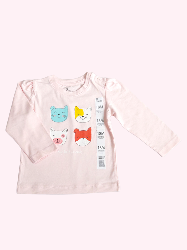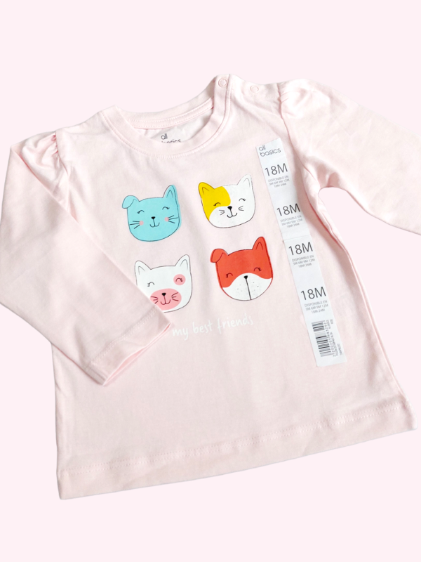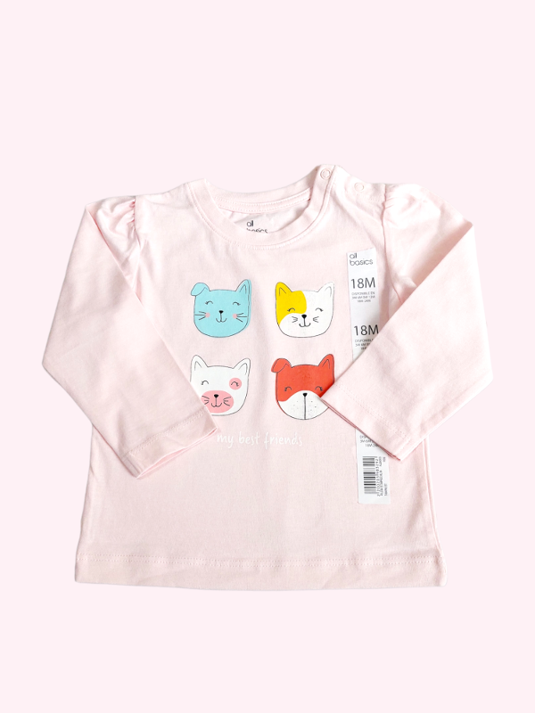 Remera manga larga rosa con gatitos All Basics 18 meses NUEVA