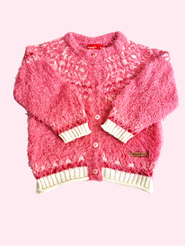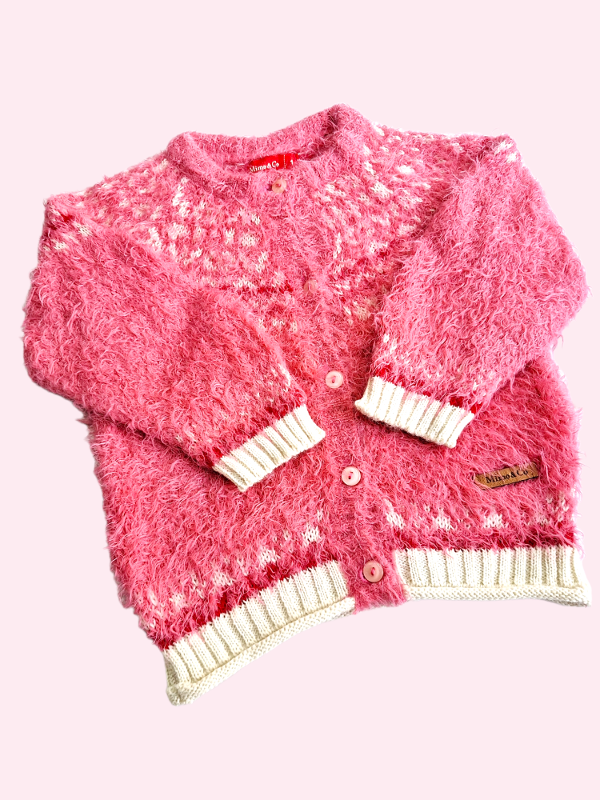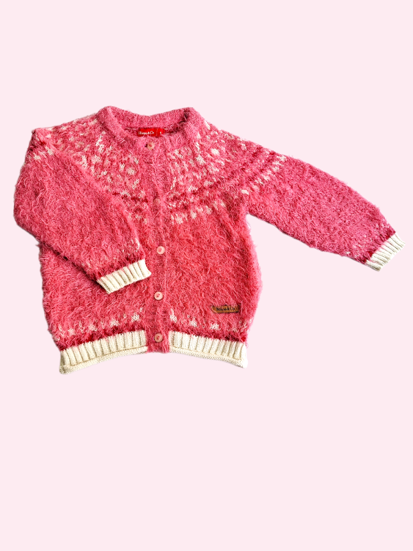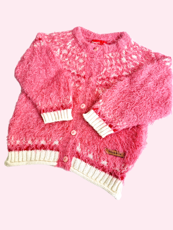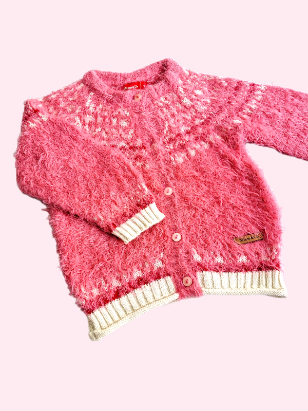 Saquito peludo rosa con blanco Mimo 18/24 meses