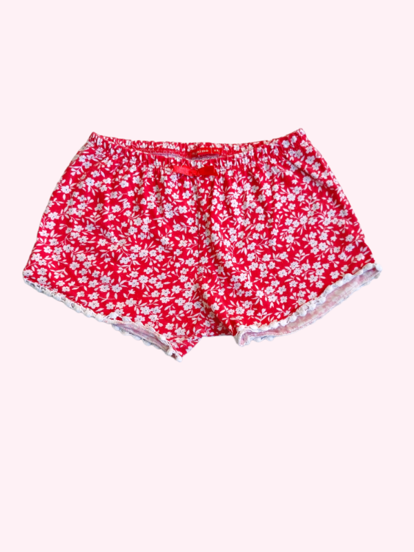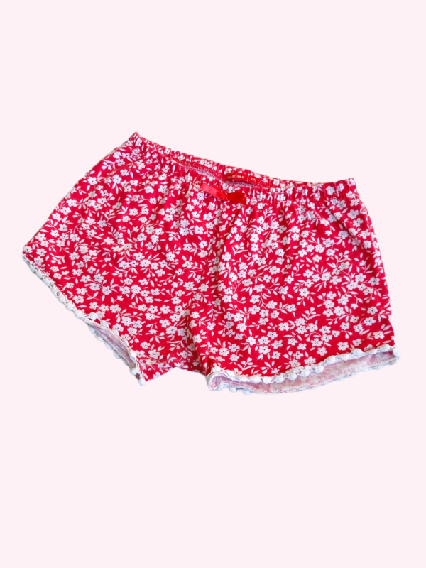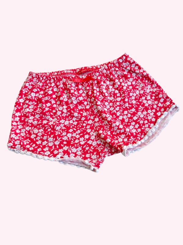 Short de algodón rojo con flores blancas Mimo 18/24 meses