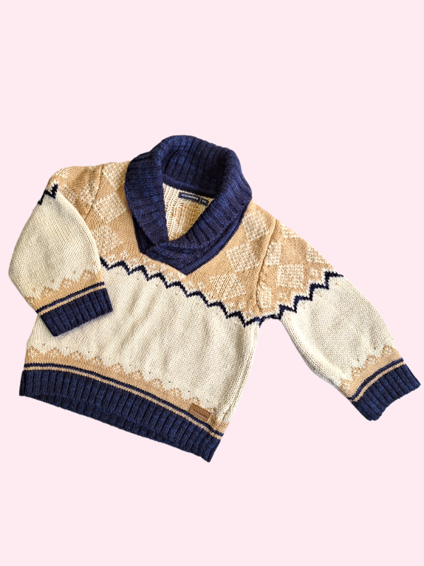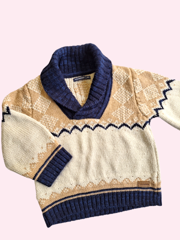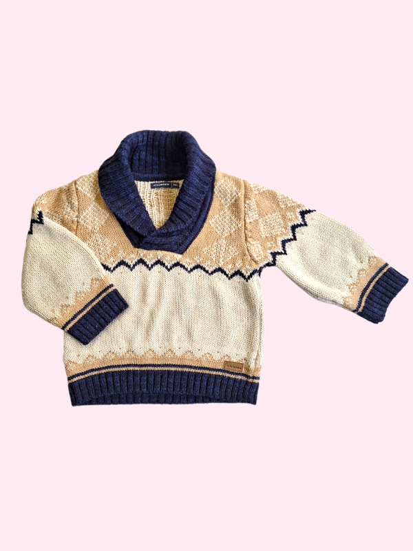 Sweater con cuello camel y azul Mimo 18/24 meses