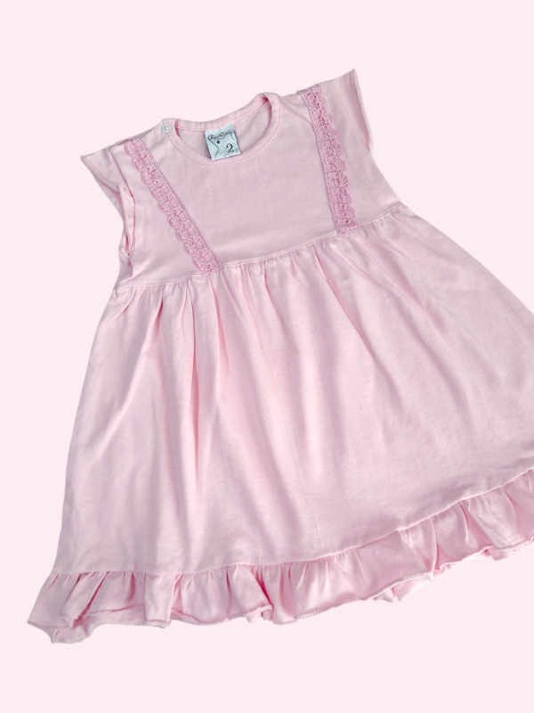 Vestido con manguitas rosas y detalles Agua Calma 18/24 meses NUEVO