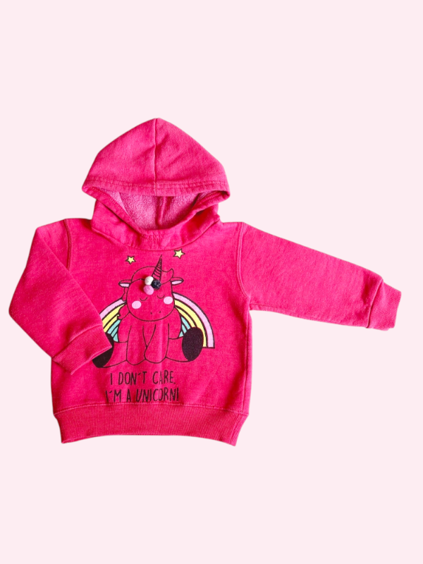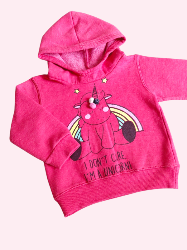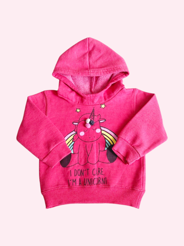 Buzo con capucha rustico rosa con unicornio Happyland 2 años