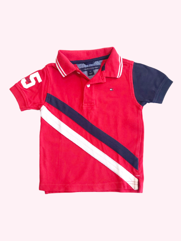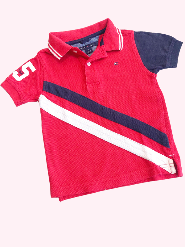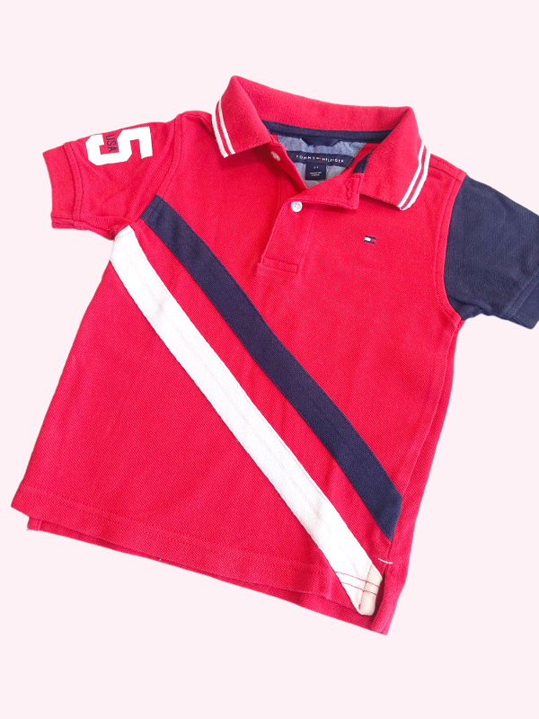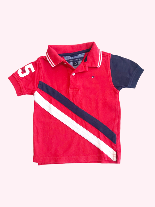 Chomba manga corta roja con raya azul y blanca Tommy 2 años