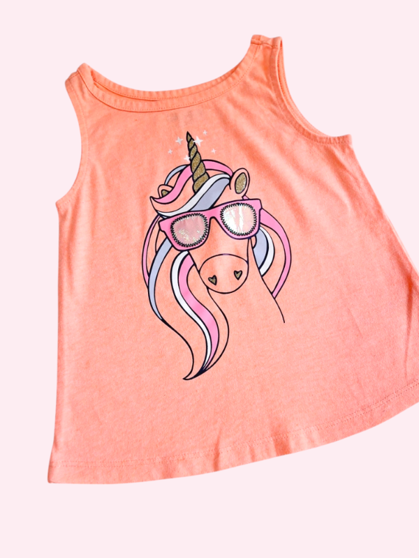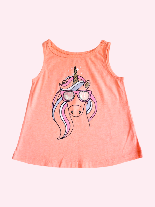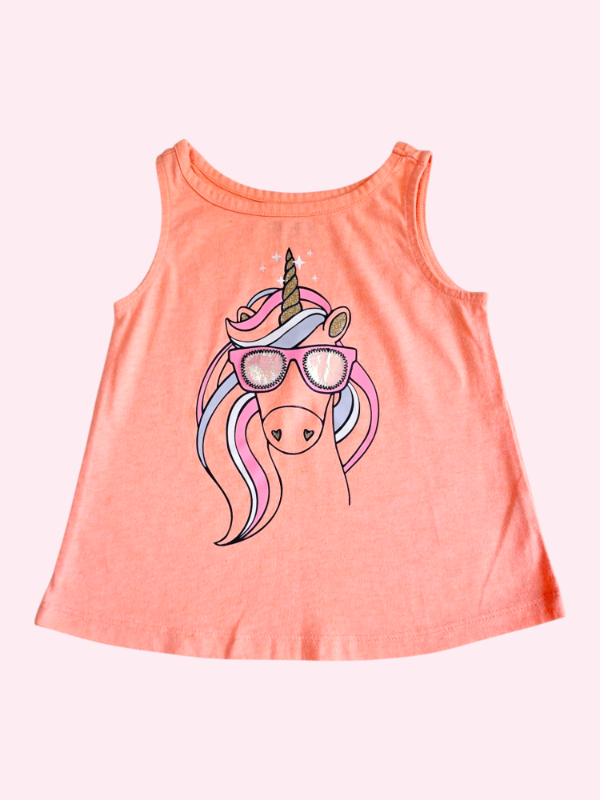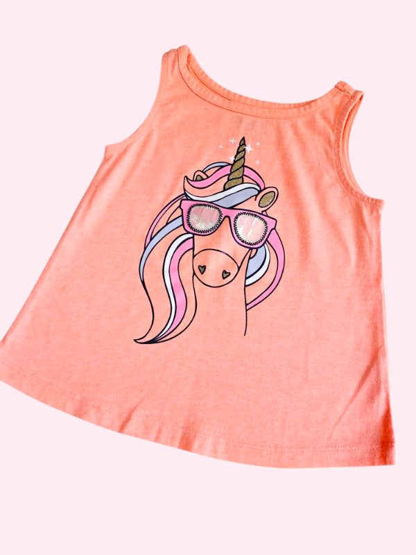 Musculosa naranja neon con unicornio Oshkosh 2 años