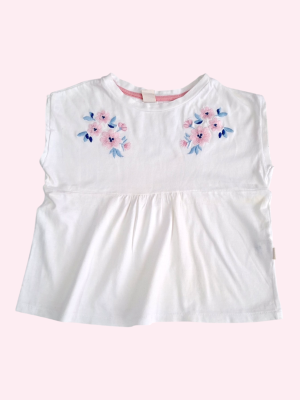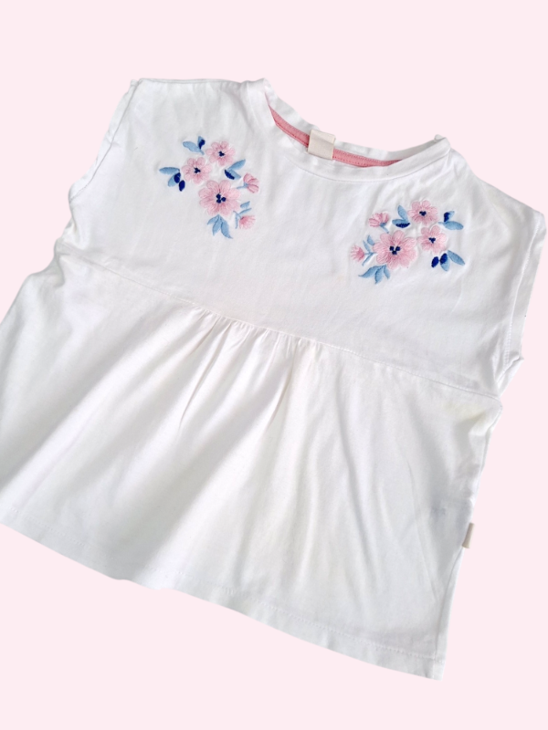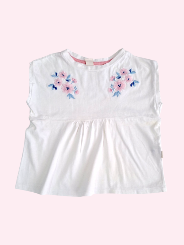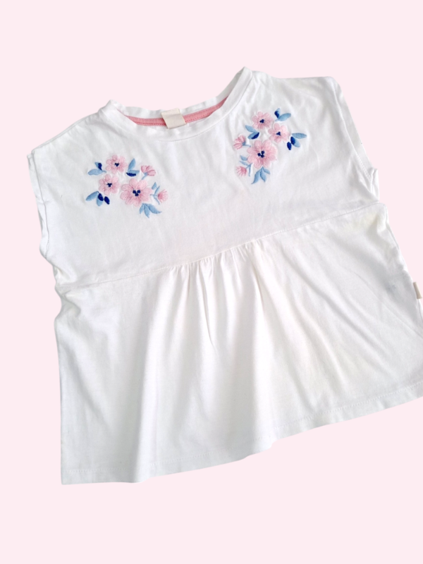 Remera manga corta blanca con flores bordados Mimo 2 años