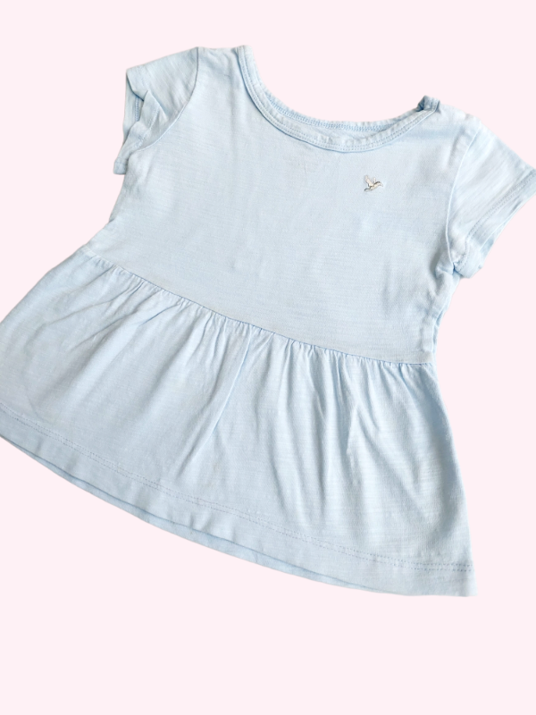 Remera manga corta celeste con pajarito bordado Carters 24 meses