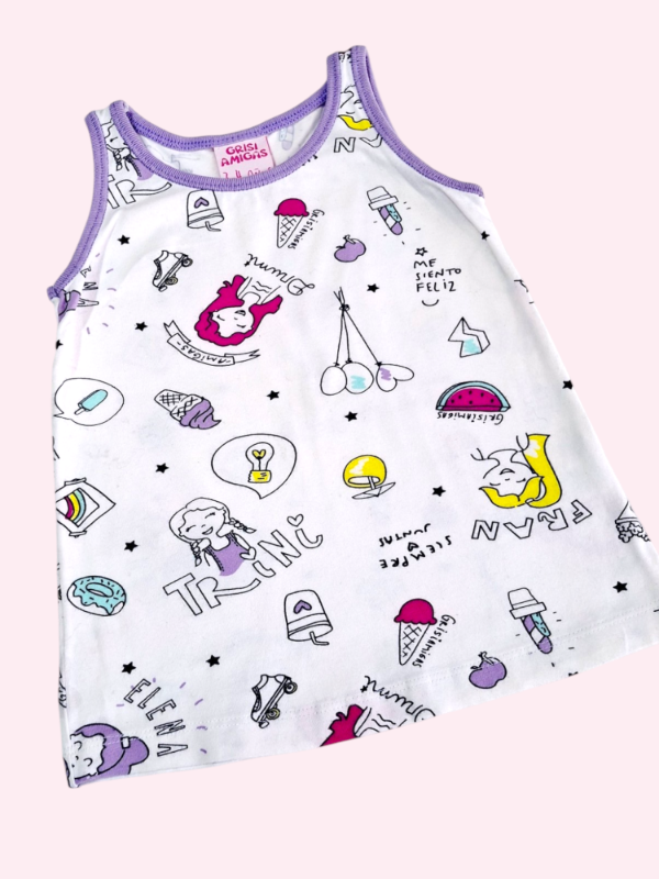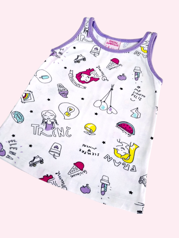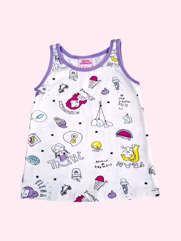 Musculosa blanca con dibujos y color lila Grisno 3/4 años