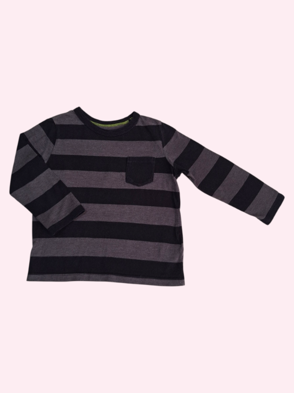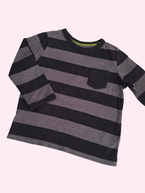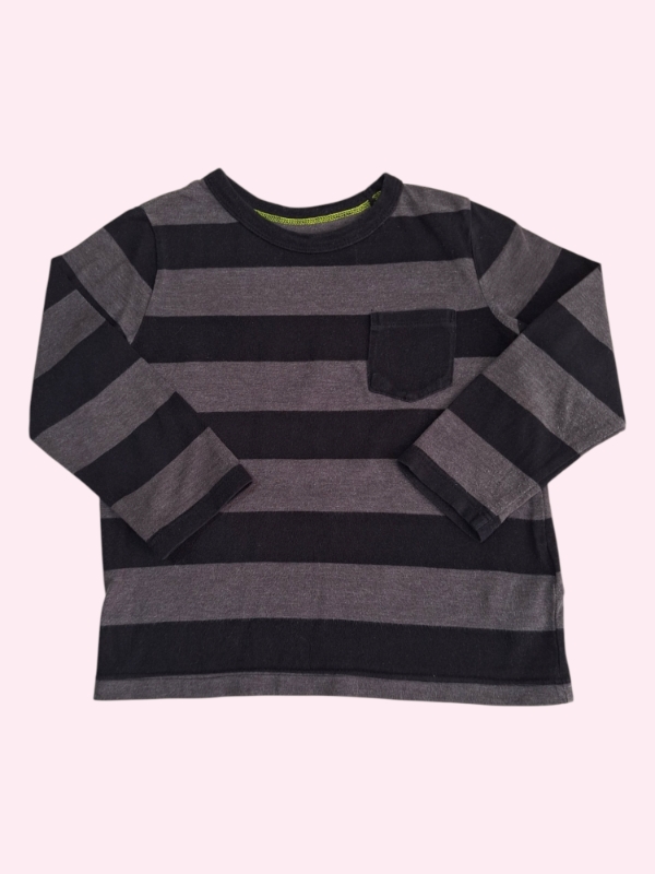 Remera manga larga rayada gris con negro y verde HYM 3/4 años