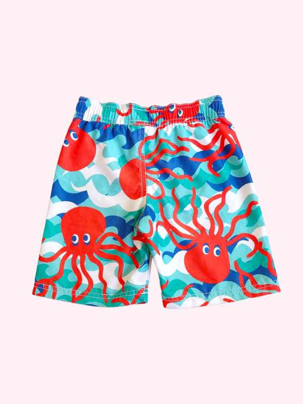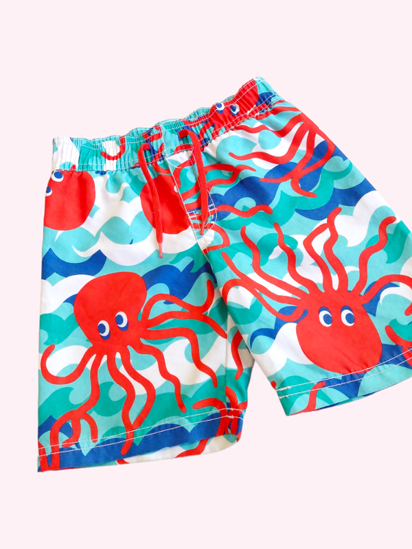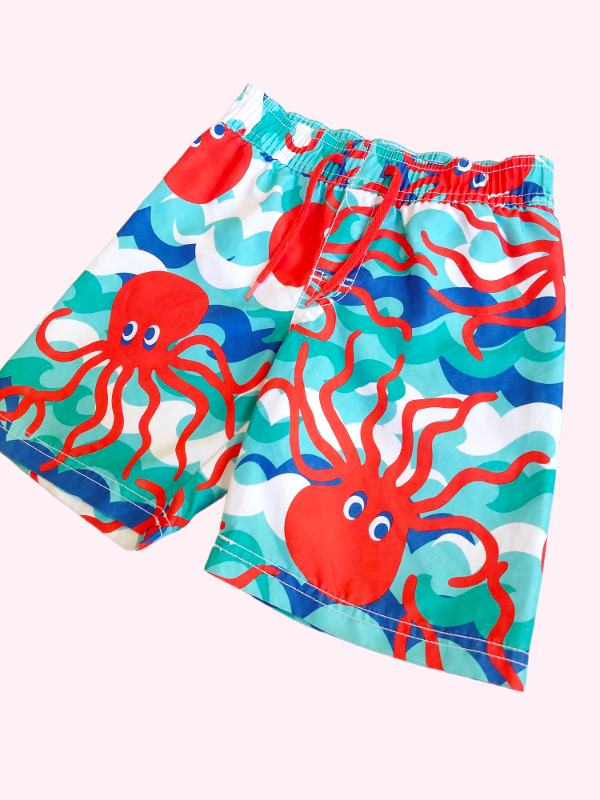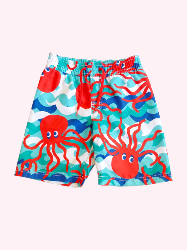 Traje de baño turquesa con pulpos rojos Old Navy 3 años