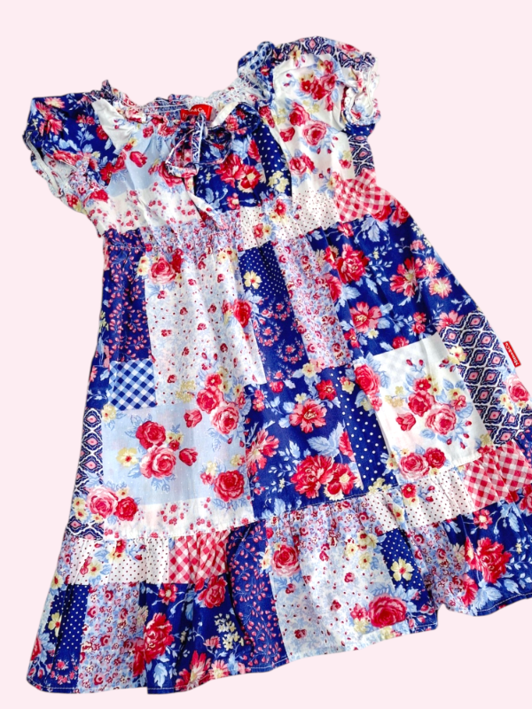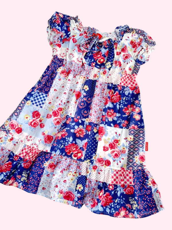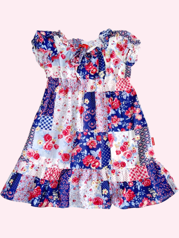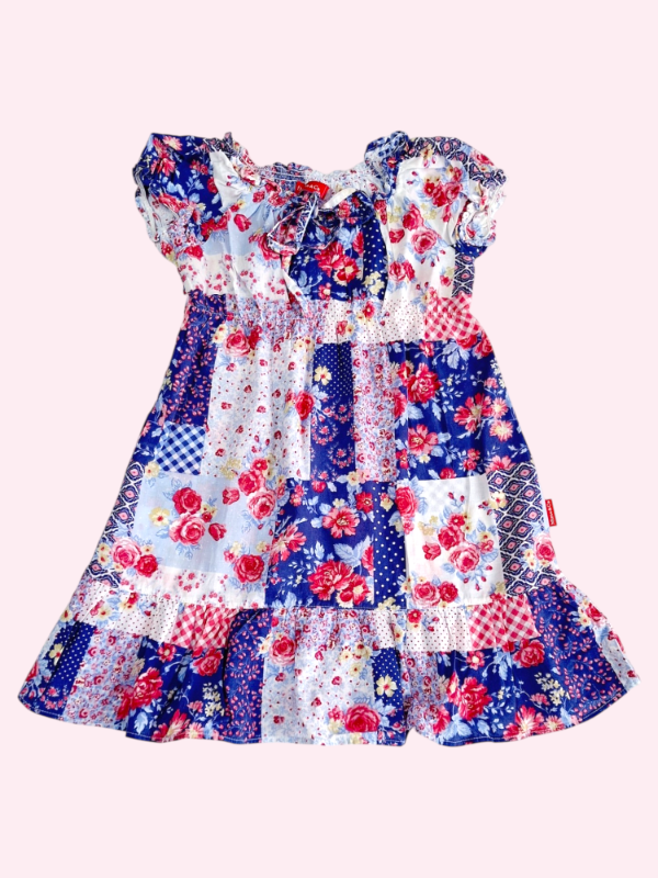 Vestido solero con manguitas azul con flores Mimo 3 años