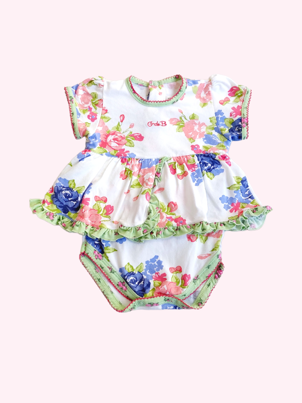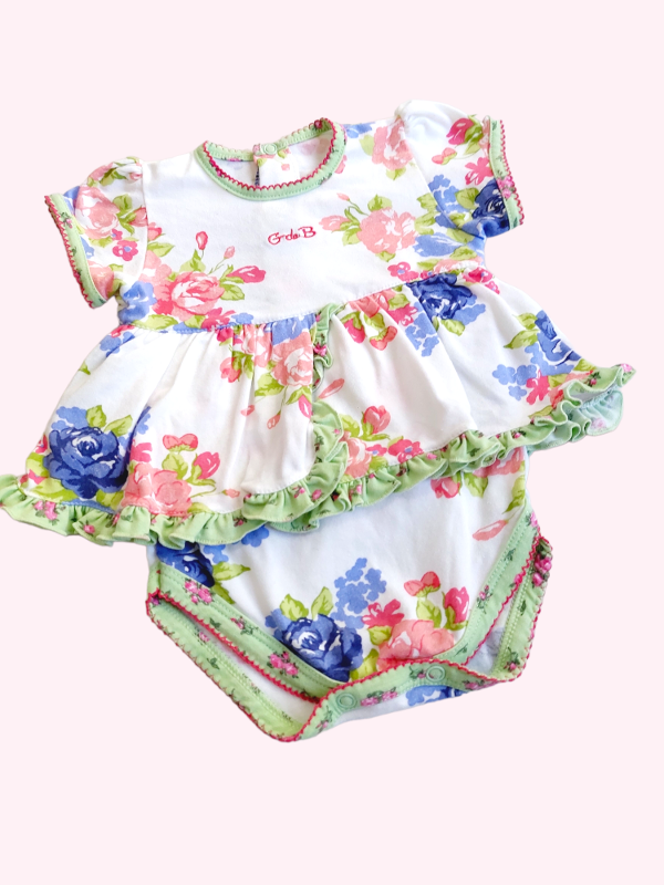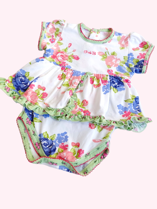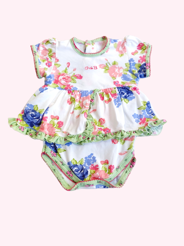 Body vestido manga corta blanco con flores G de B 3 meses