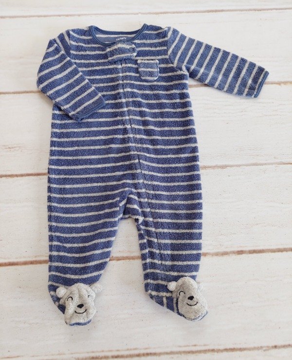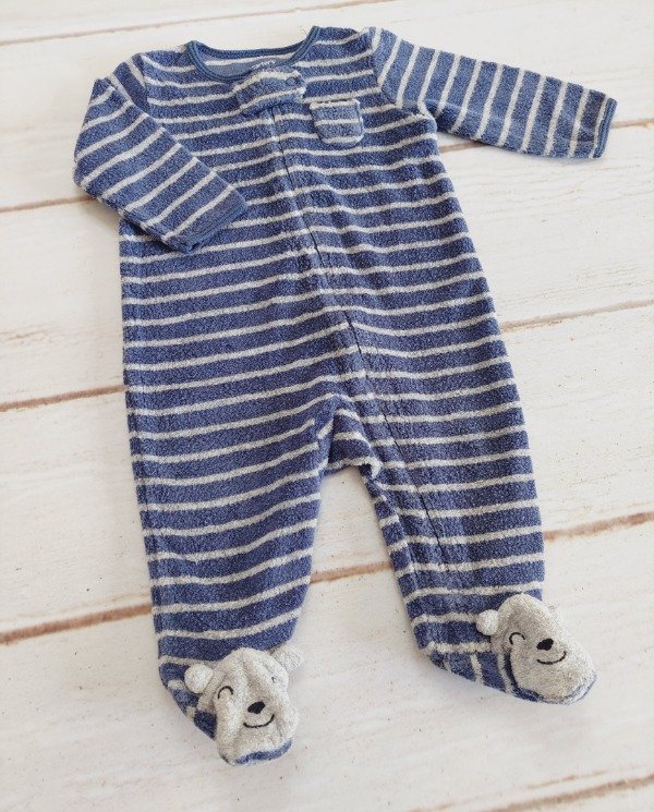 Enterito con pie azul rayado tipo toalla Carters 3 meses