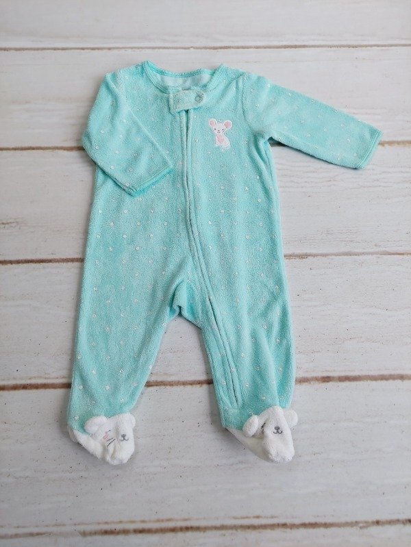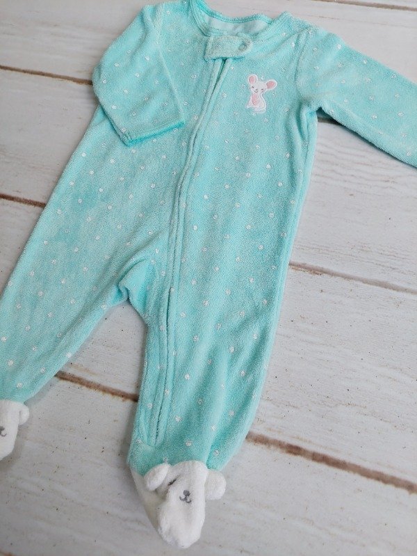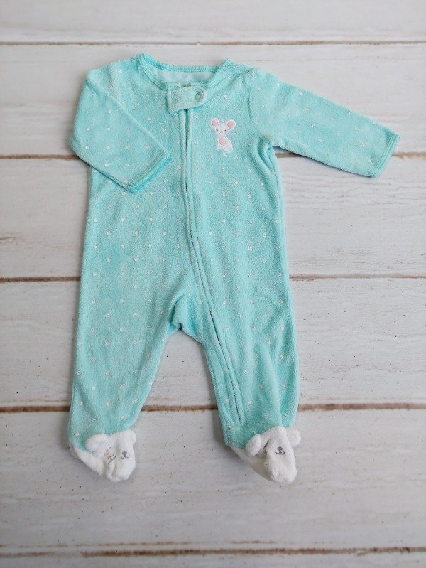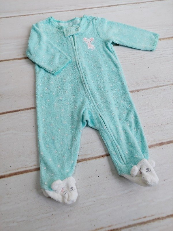 Enterito con pie de toalla turquesa con conejito Carters 3 meses