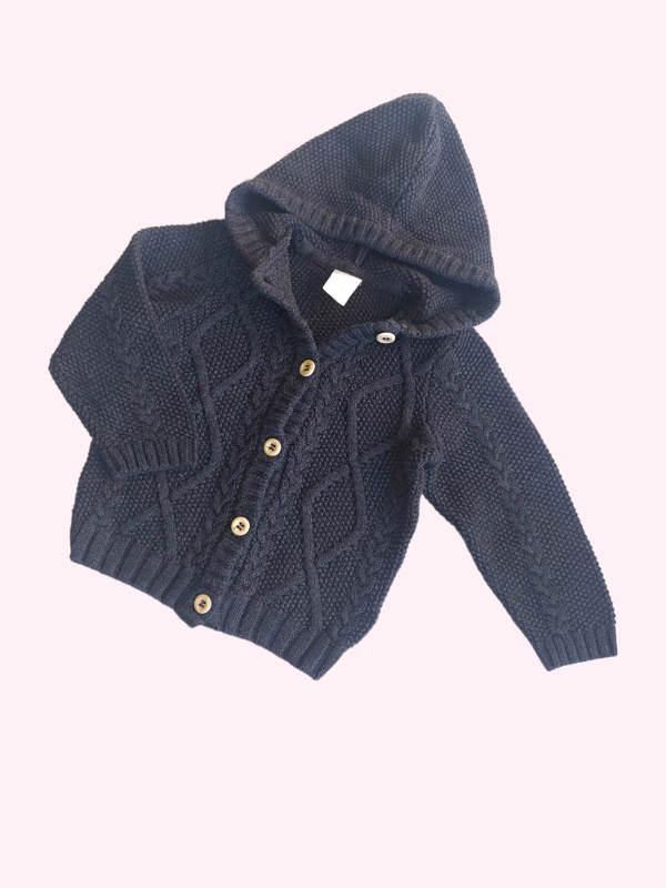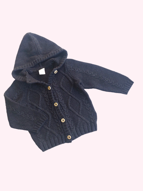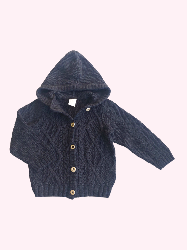 Saquito con capucha tejido color negro HYM 4/6 meses