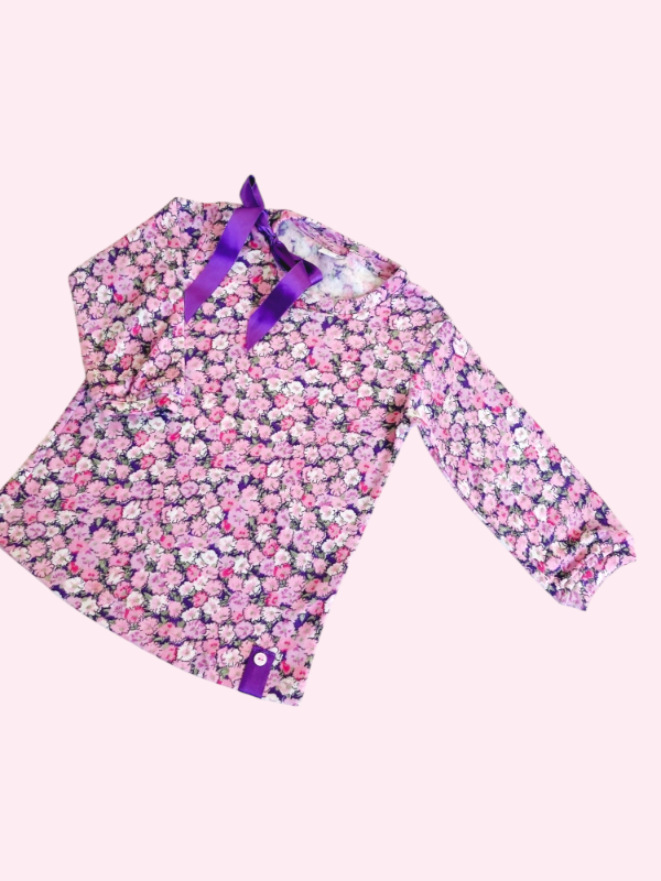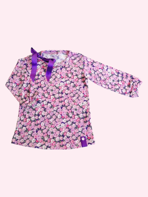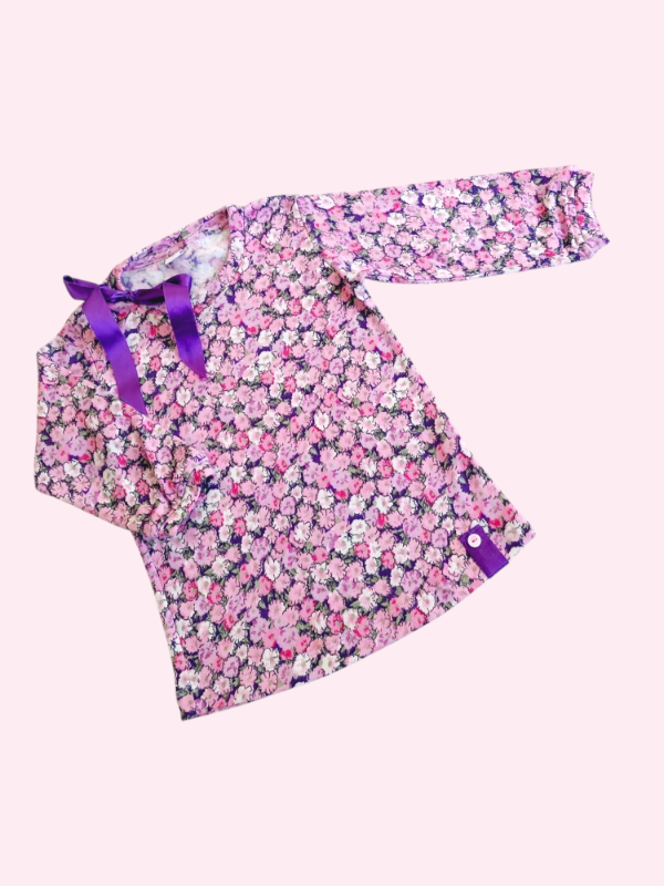 Buzo rústico floreado con moño violeta Soft Red 4 años