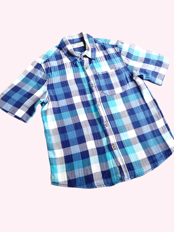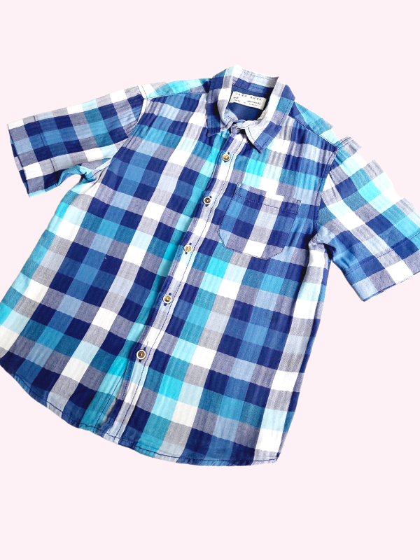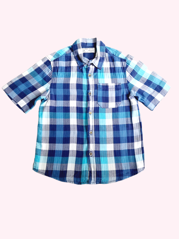 Camisa manga corta cuadrille azul celeste y blanco Zara 4/5 años
