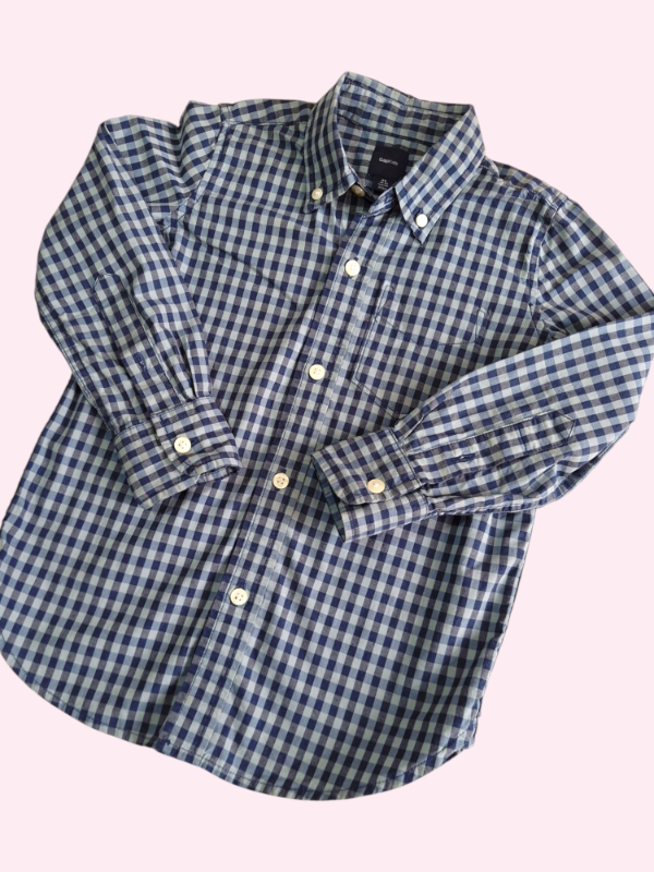 Camisa manga larga cuadrille verde con azul GAP 4/5 años