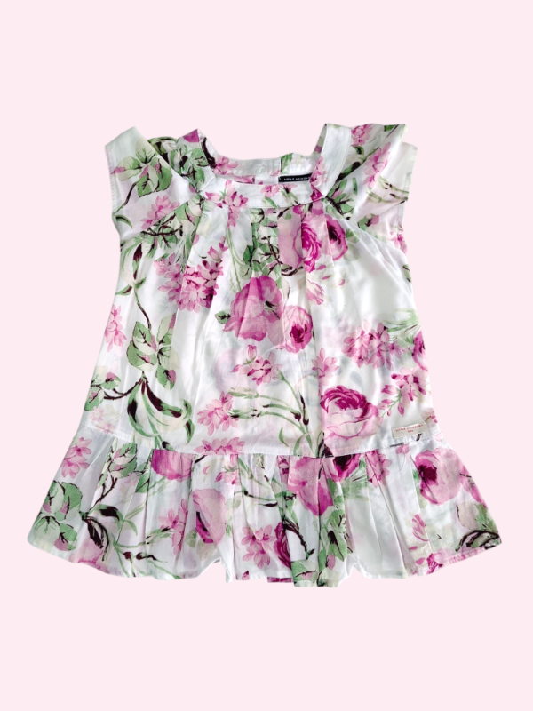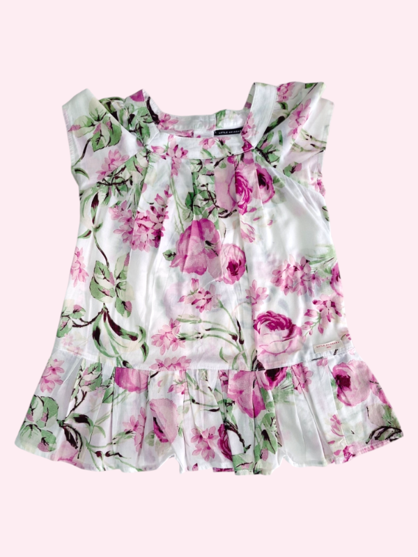 Camisola blanca con flores rosas y verdes Little Akiabara 4 años
