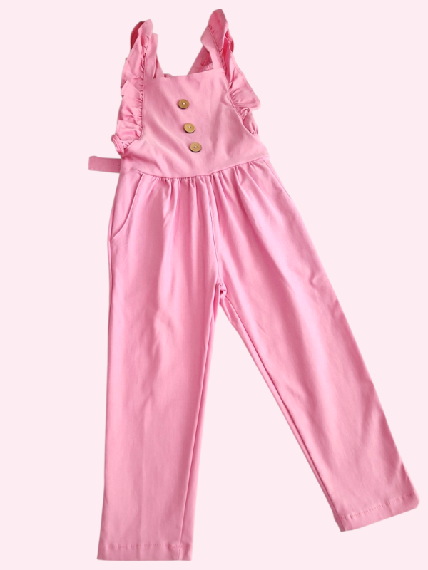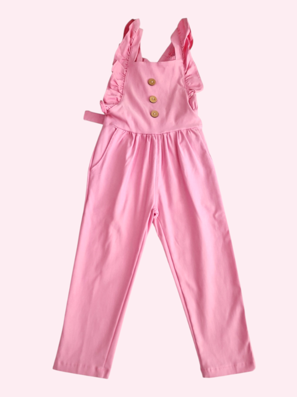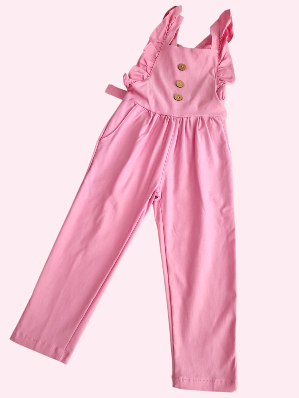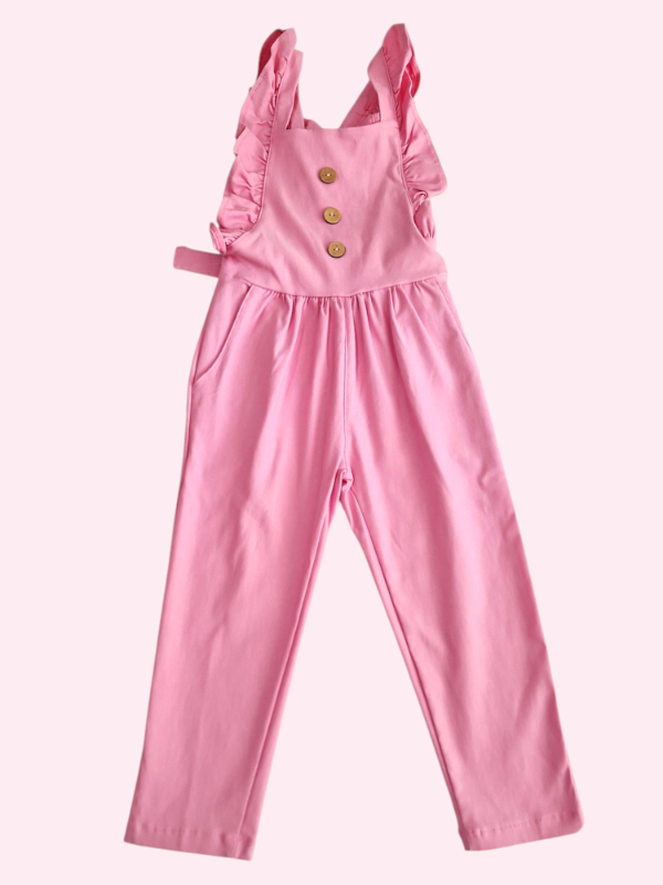 Enterito estilo jardinero con volados y botones rosas 4/5 años