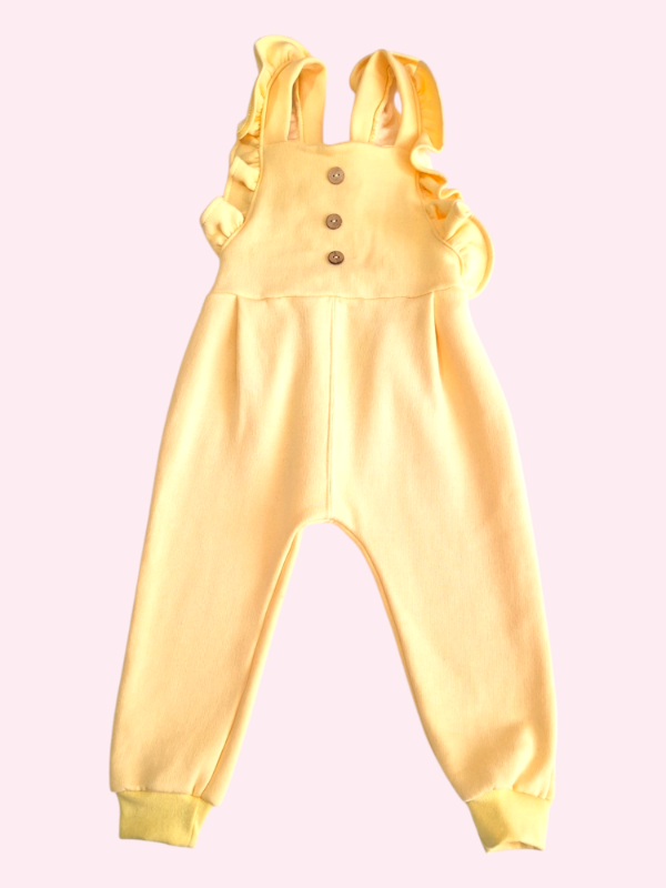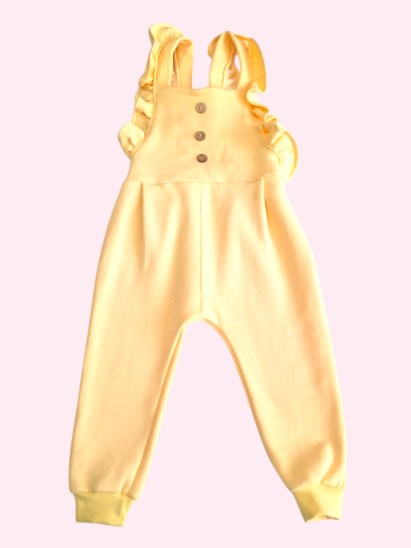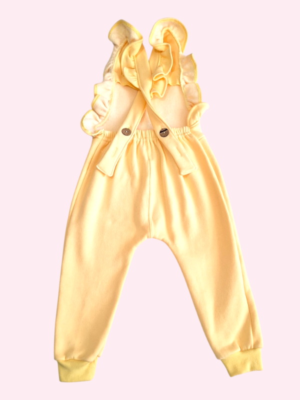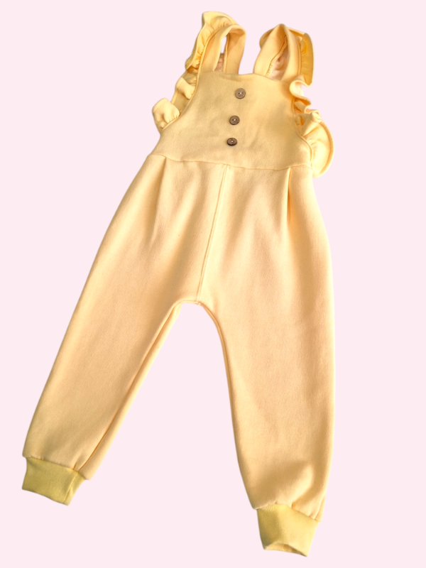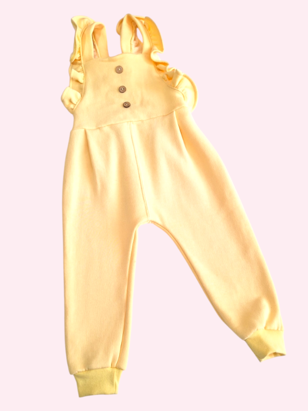 Enterito estilo jardinero de algodon con volados y botones amarillo 4/5 años