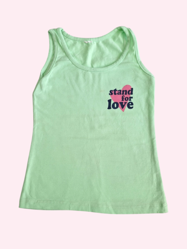 Musculosa verde agua con estampa corazon Stand For Love 4 años