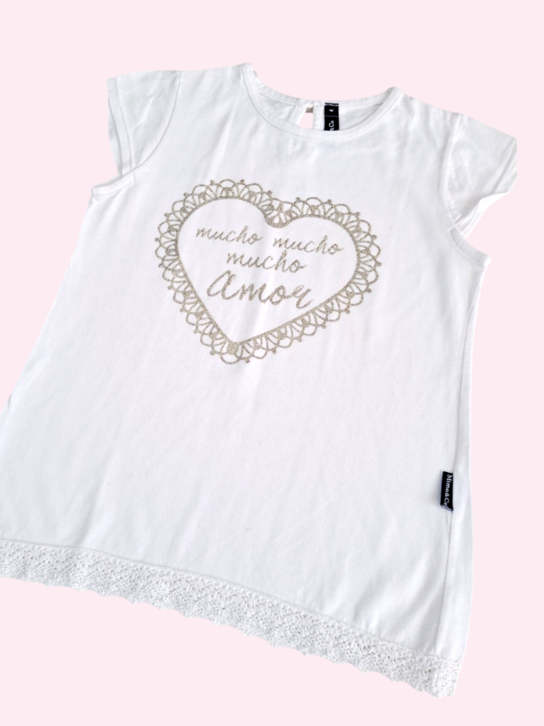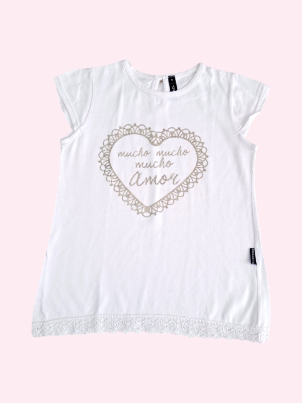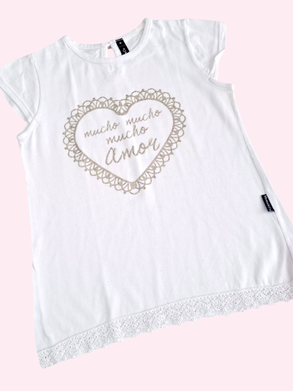 Remera manga corta blanca con estampa dorada Mimo 4 años