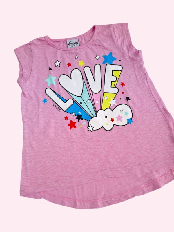 Remera manga corta rosa con estampa Grisino 4/5 años