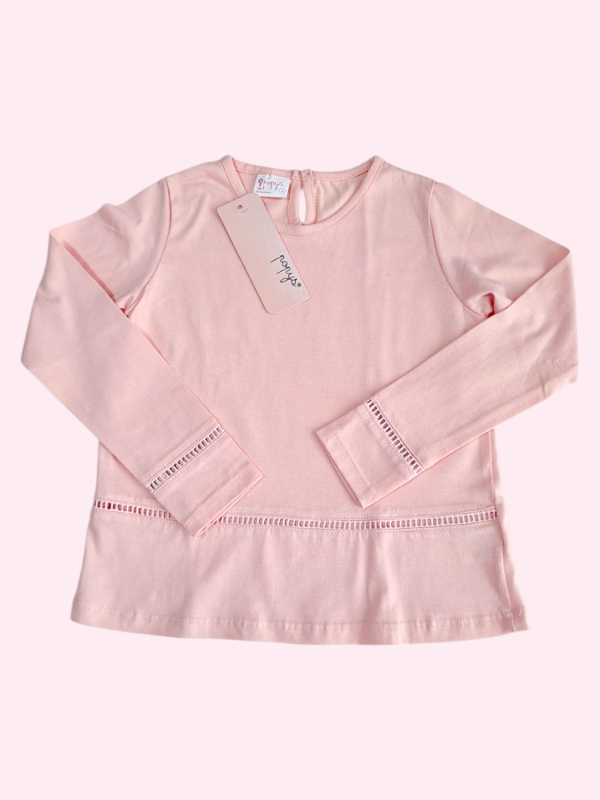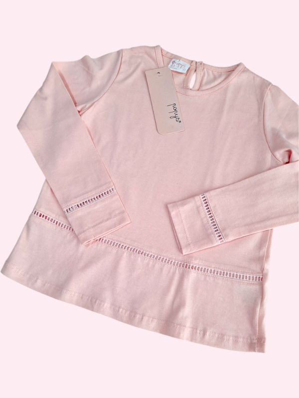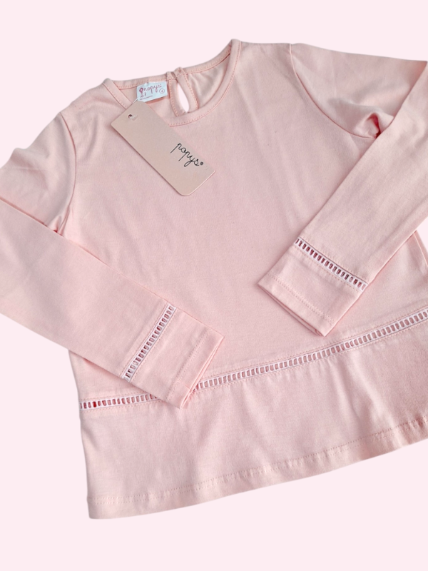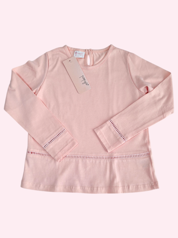 Remera manga larga color rosa claro con broderie Popys 4 años NUEVA