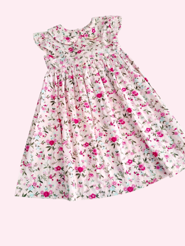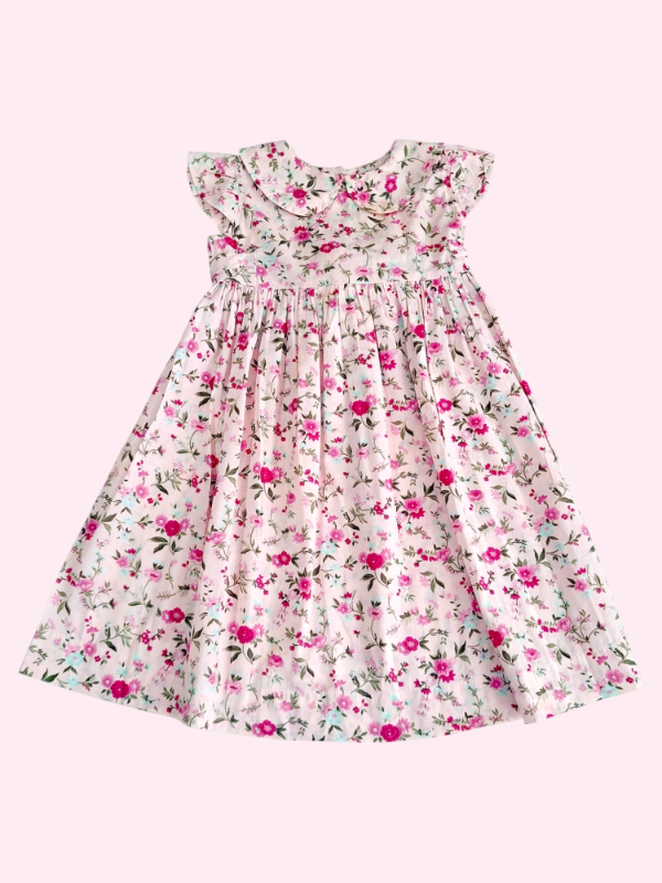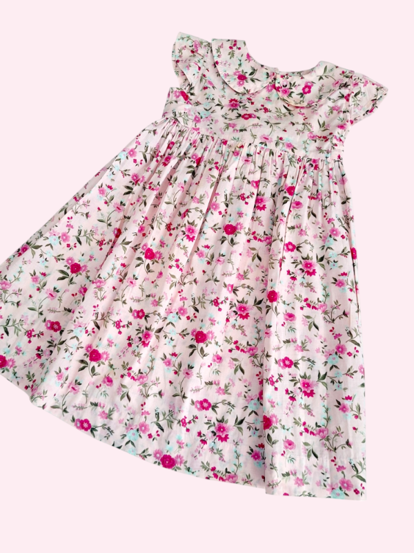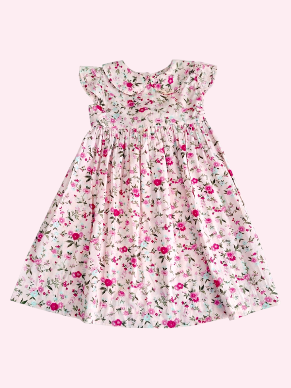 Vestido liviano color rosa con flores con cuellito 4 años