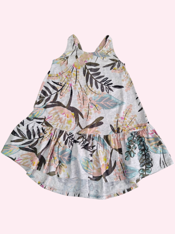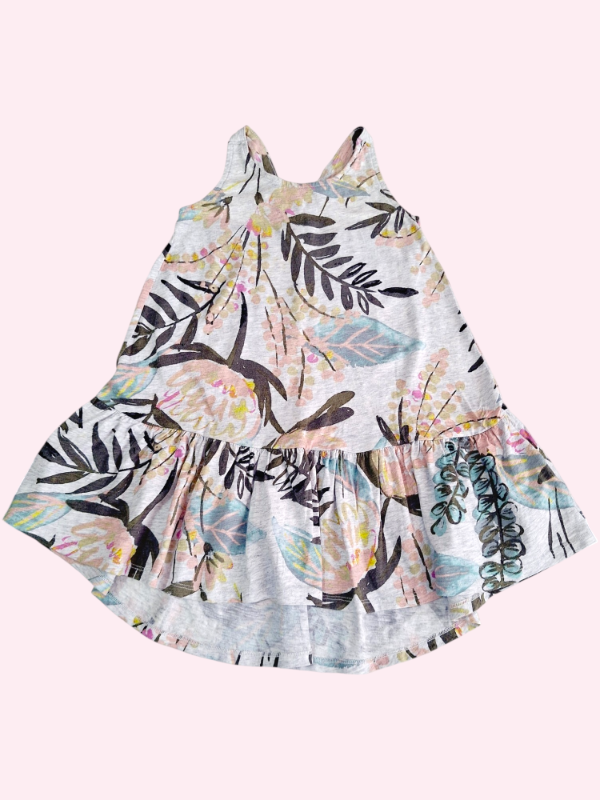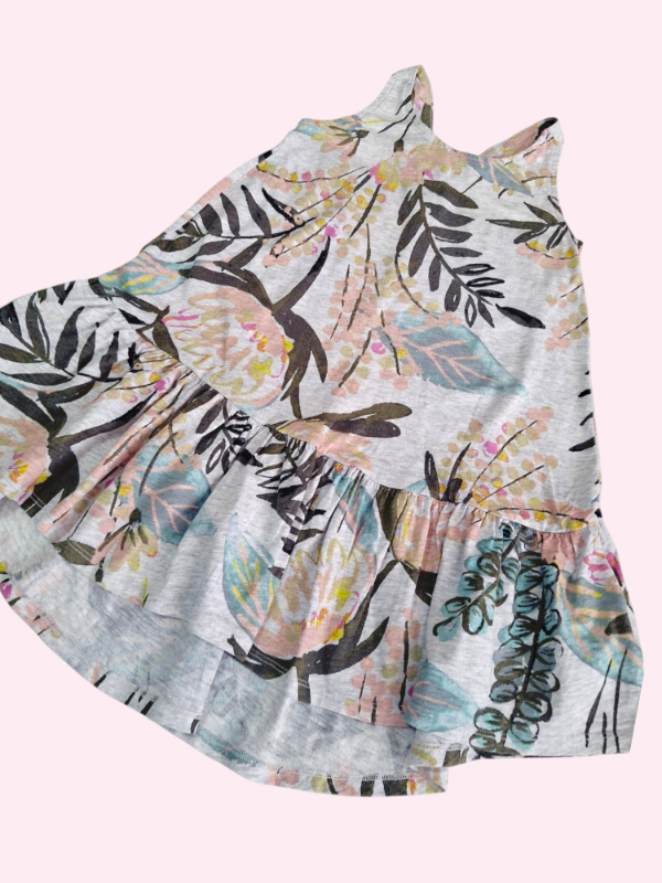 Vestido solero gris melange con flores de colores Old Navy 4 años
