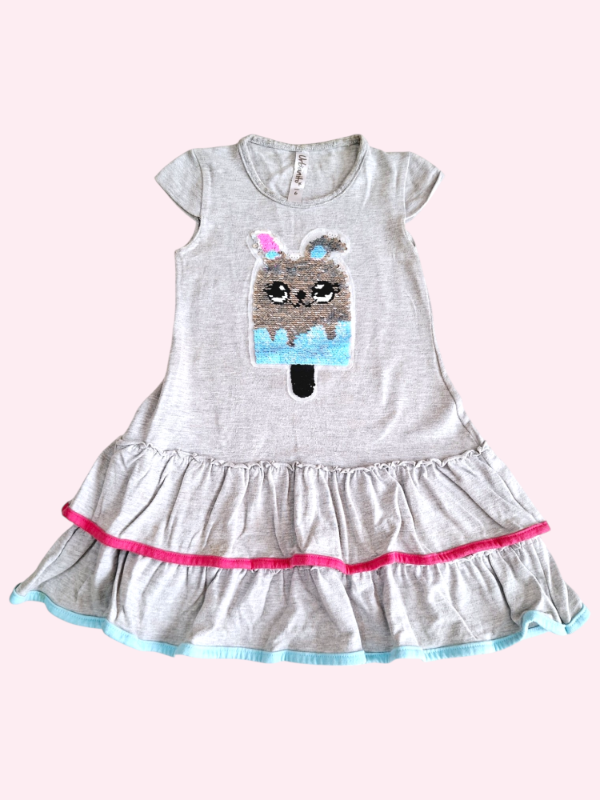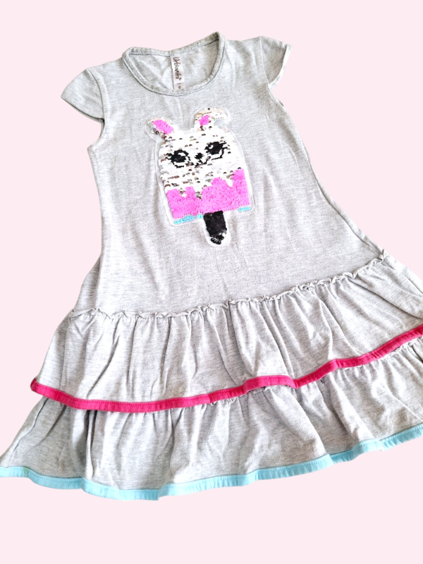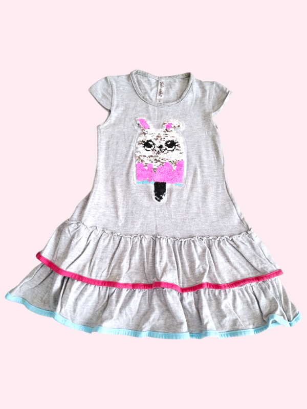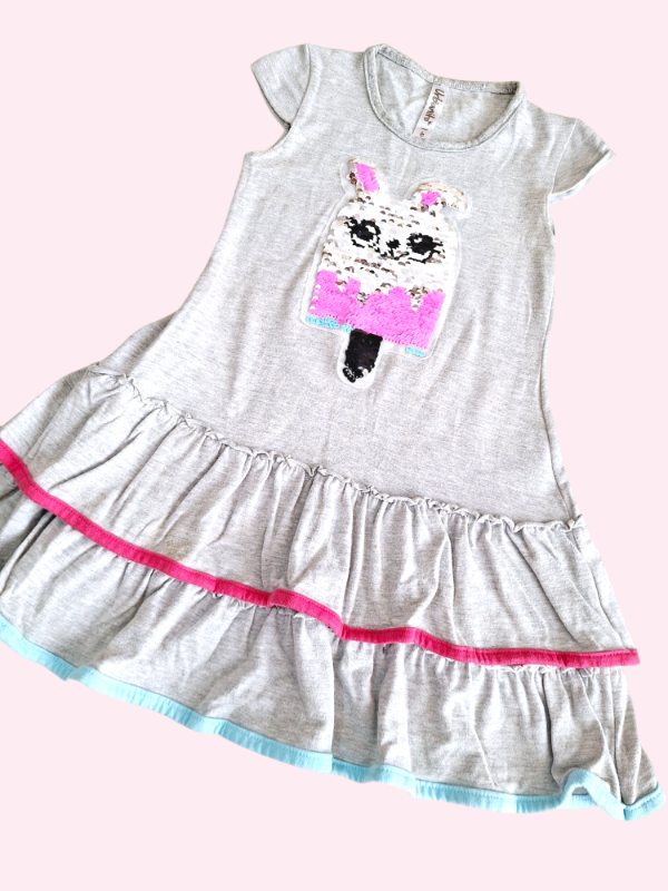 Vestido manga corta gris melange con estampa lentejuelas Urbanito 5/6 años