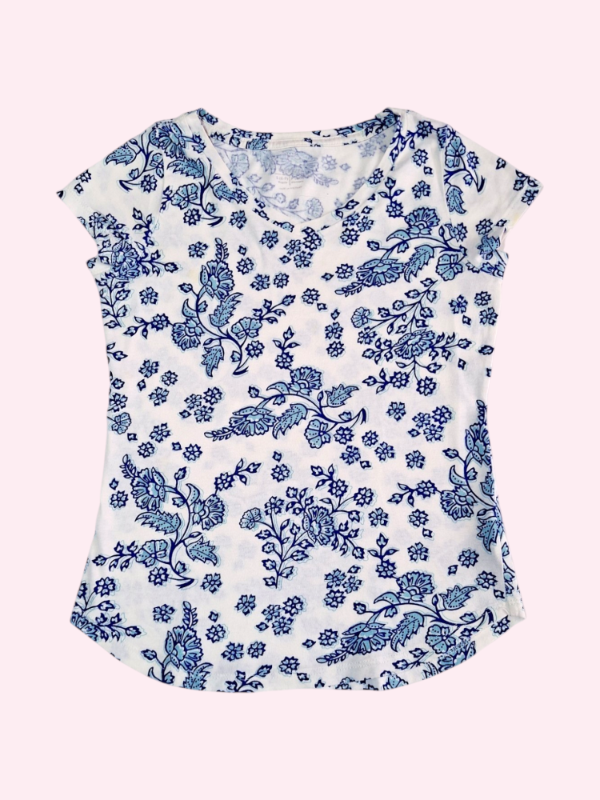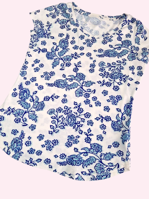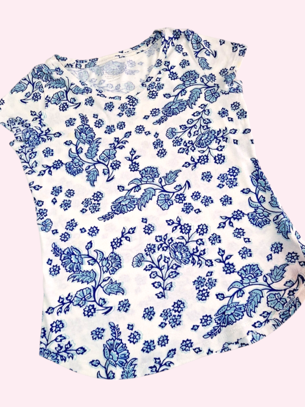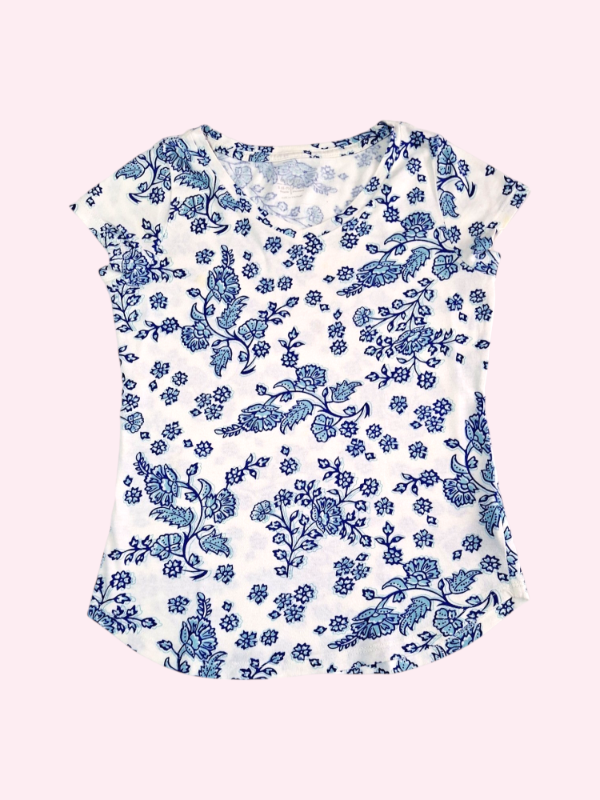 Remera manga corta blanco con flores azules Old Navy 6/7 años