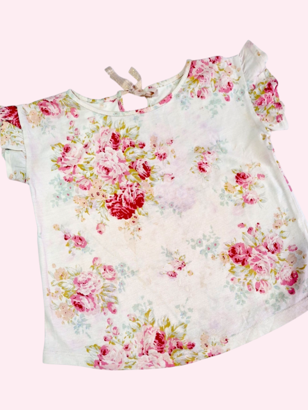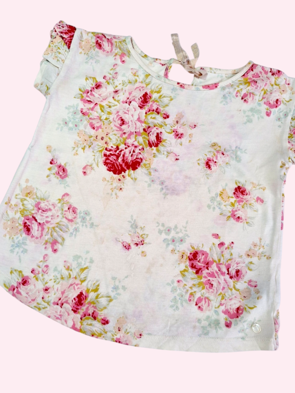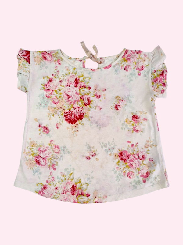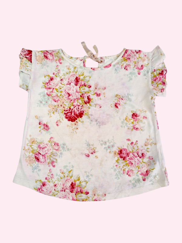 Remera manga corta con volados crema Little Akiabara 6 años
