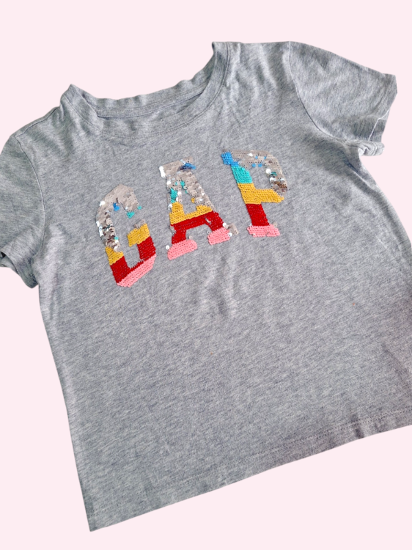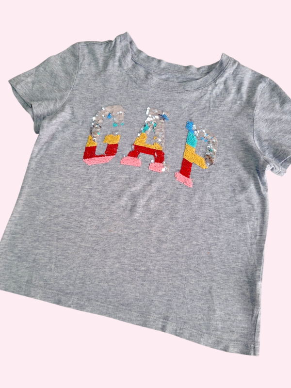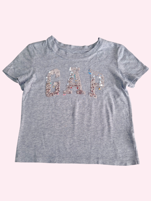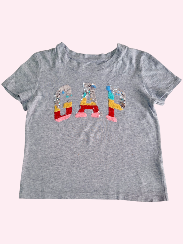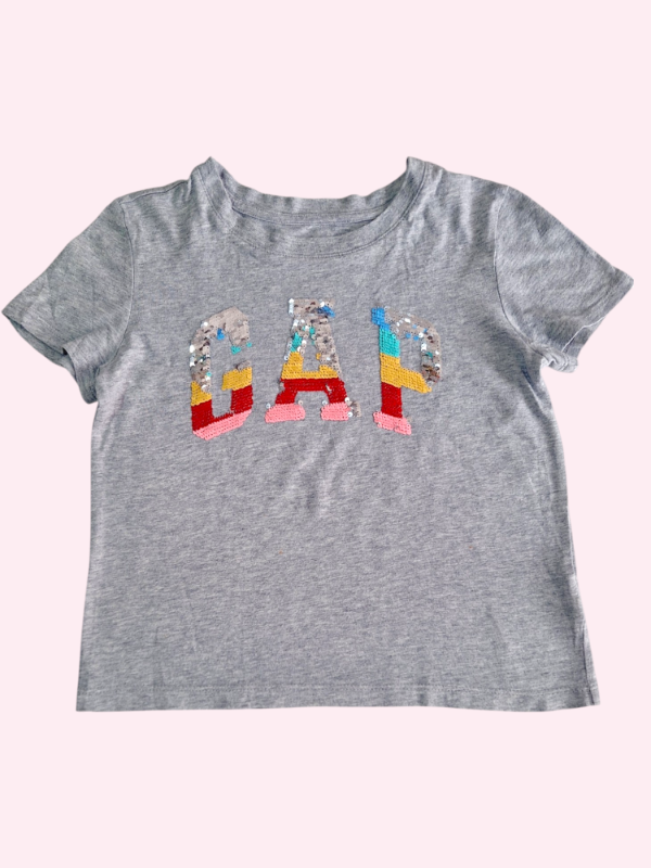 Remera manga corta gris melange con GAP lentejuelas 6 años
